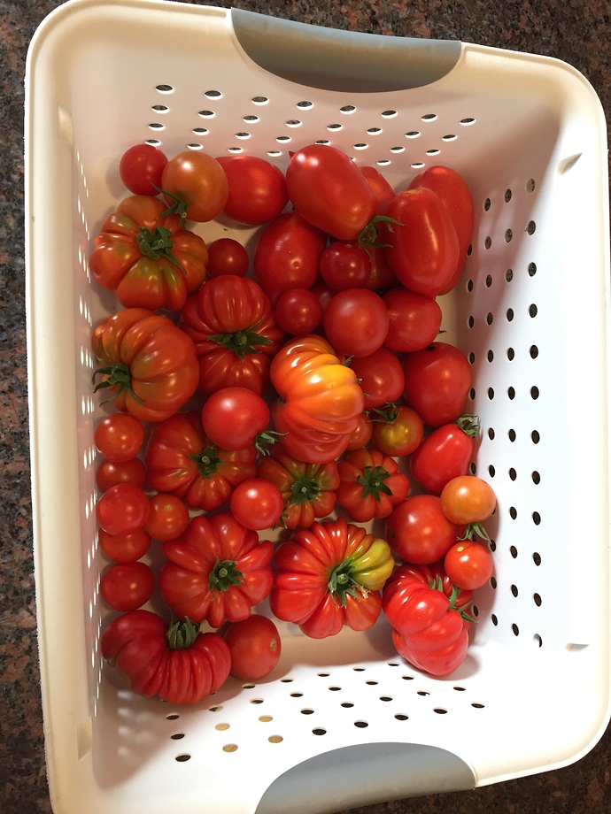 Those tomatoes are absolutely gorgeous! They look decorative with all those frilly ones in there.