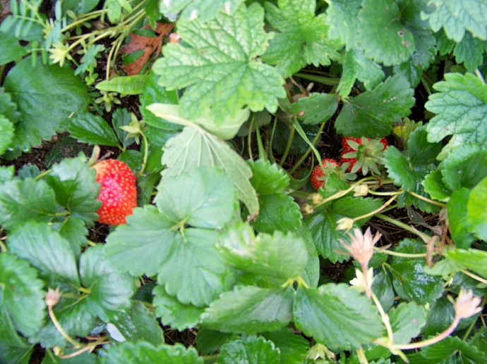 I still have some Mara Des Bois Strawberries flowering and producing despite the freezing temps we have had over the last month. Granted, not a lot, but boy are they good to snack on this late in the season.