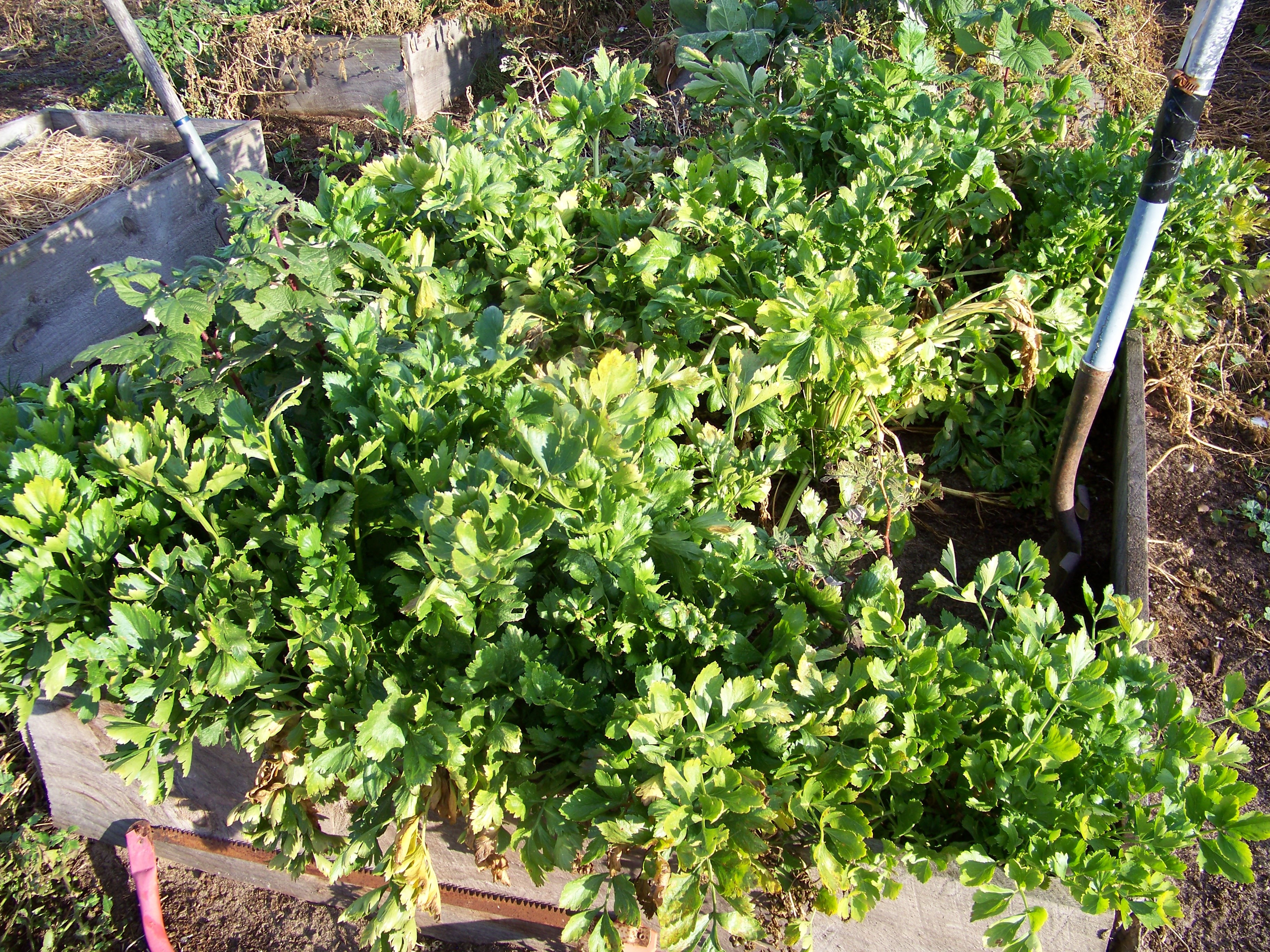 I also have a couple beds of Tall Utah celery. I have been cutting off some stalks on the outside edges all summer and into fall. I dug up a few plants and placed them roots and all in a bucket of cool water, and left them in my kitchen for a week just snipping off what I needed at the time. I also chopped some up, leaves and all, and froze them in baggies for winter stews etc. Unfortunately, the turkeys got in my garden over the last few days and had a picnic with what was left.