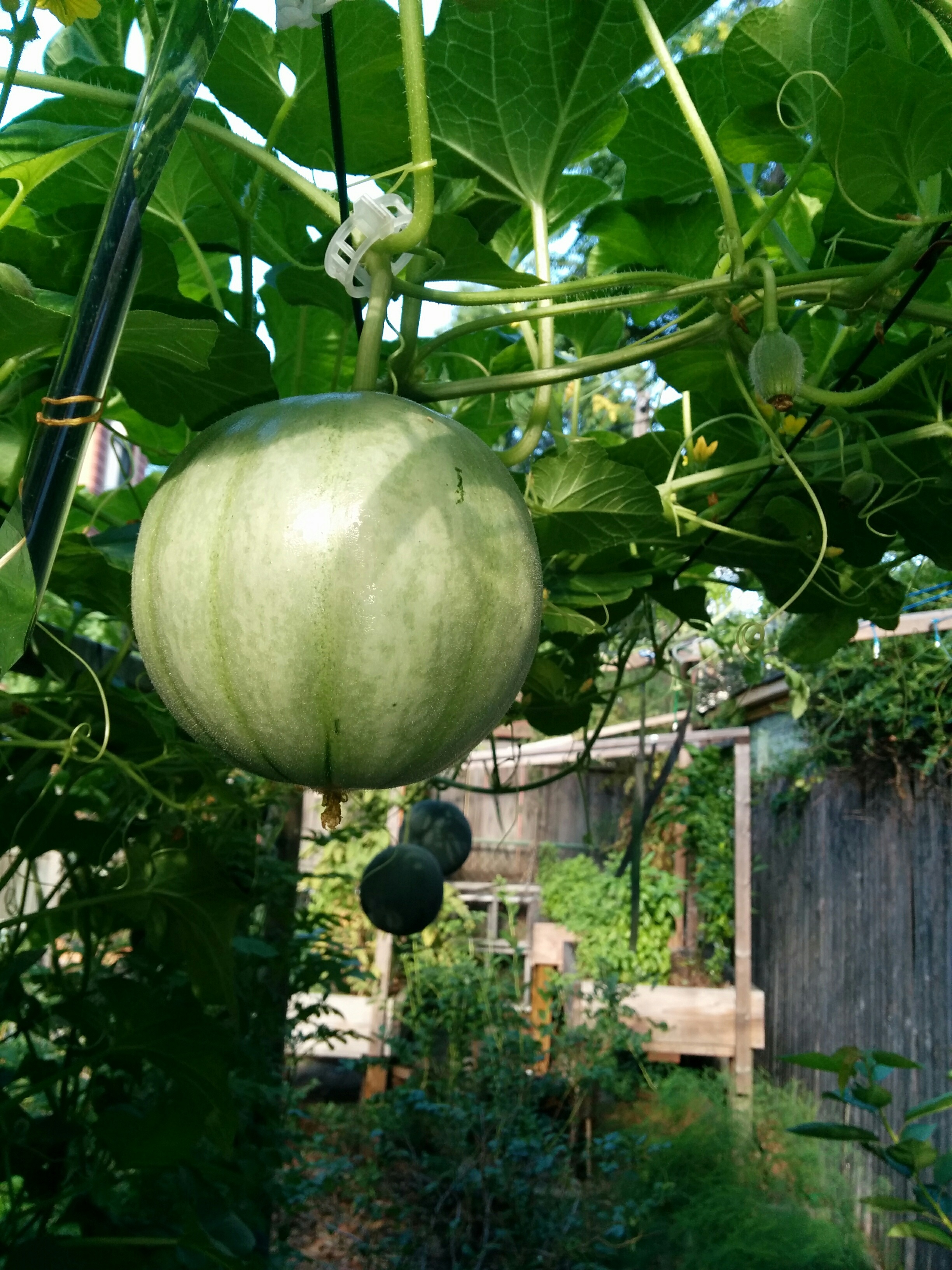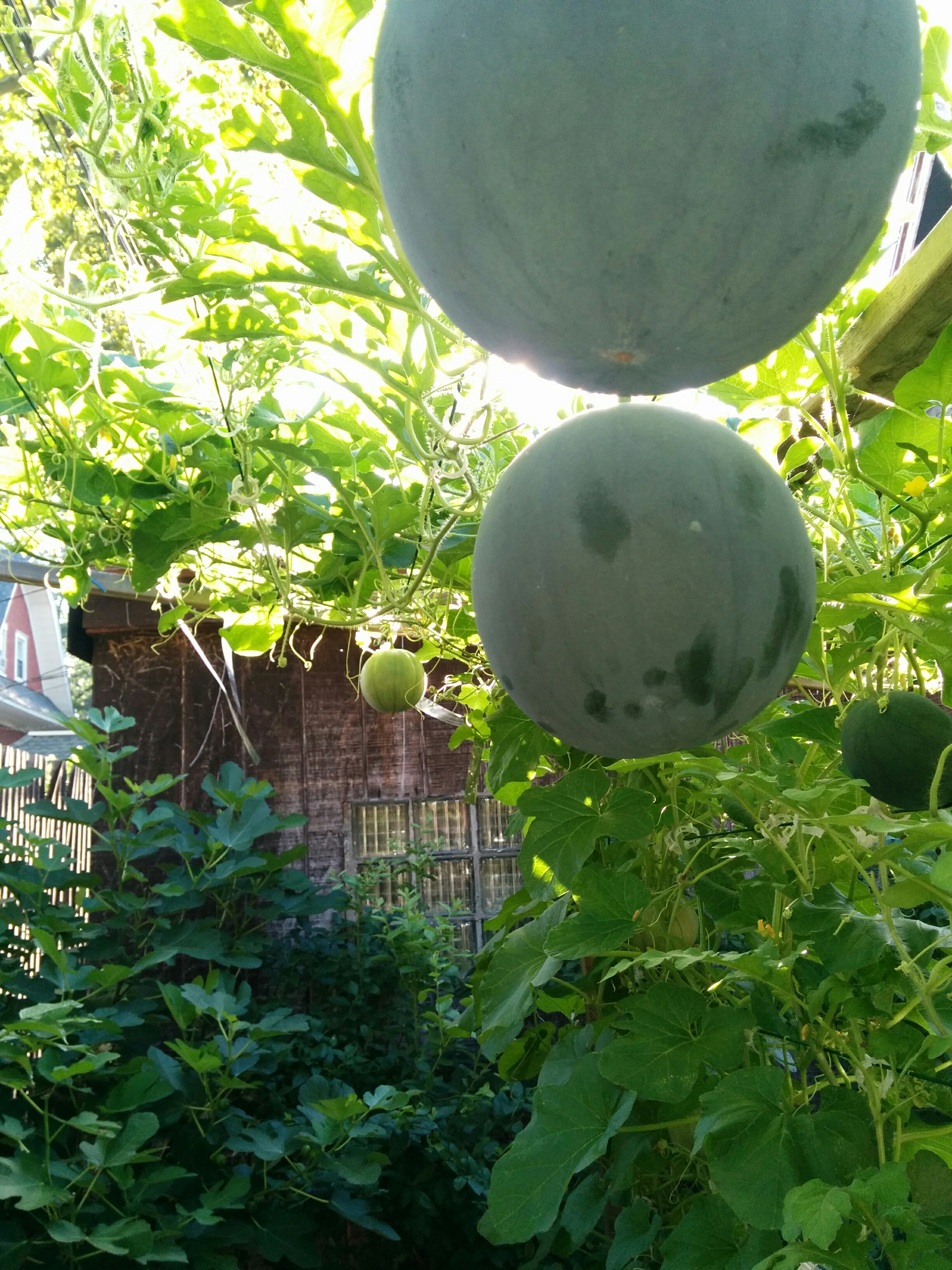 The watermelons are Sugar Baby, the melons are Petit Gris de Rennes, both from Bakercreek Seeds.