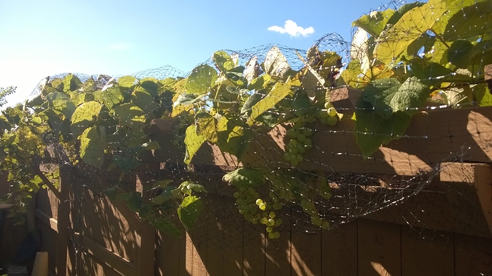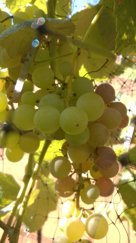 I put on the net, anticipating to get some ripe grapes… unless the birds deny my rights to some sweet grapes!