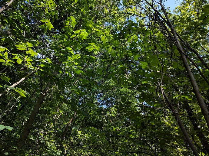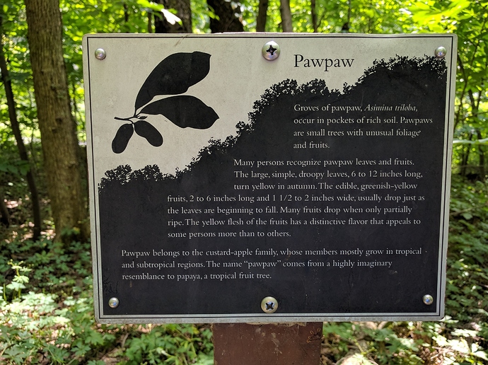 Today I took another walk through the same arboretum that Peterson did when he ate his first Paw Paw. Last year I went to a Paw Paw tasting there and the trees were loaded. This year I couldn’t find a single fruit. The patch probably has at least 100 trees and not a fruit to be found.