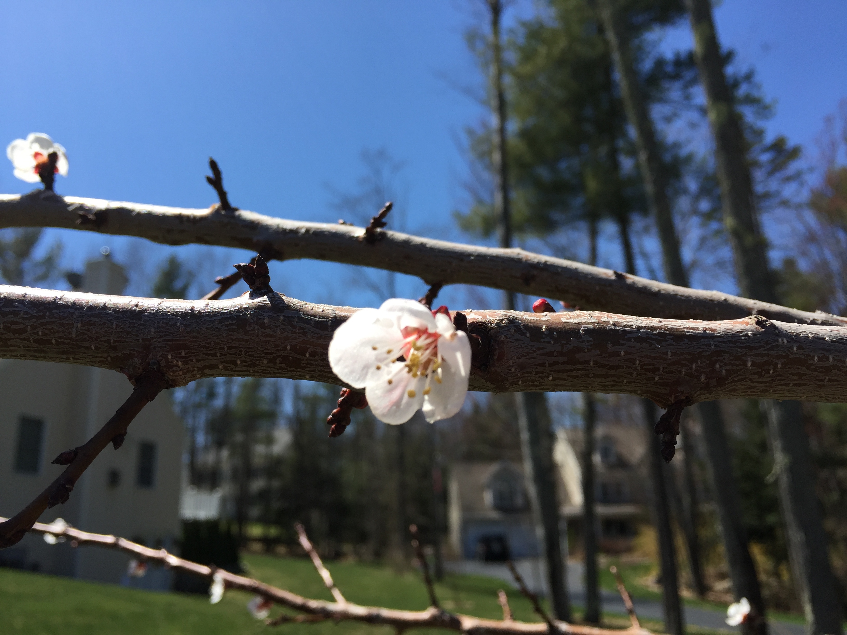 Apricot blooms opened today. We are expecting a freeze the next two mornings. I’m a little worried.