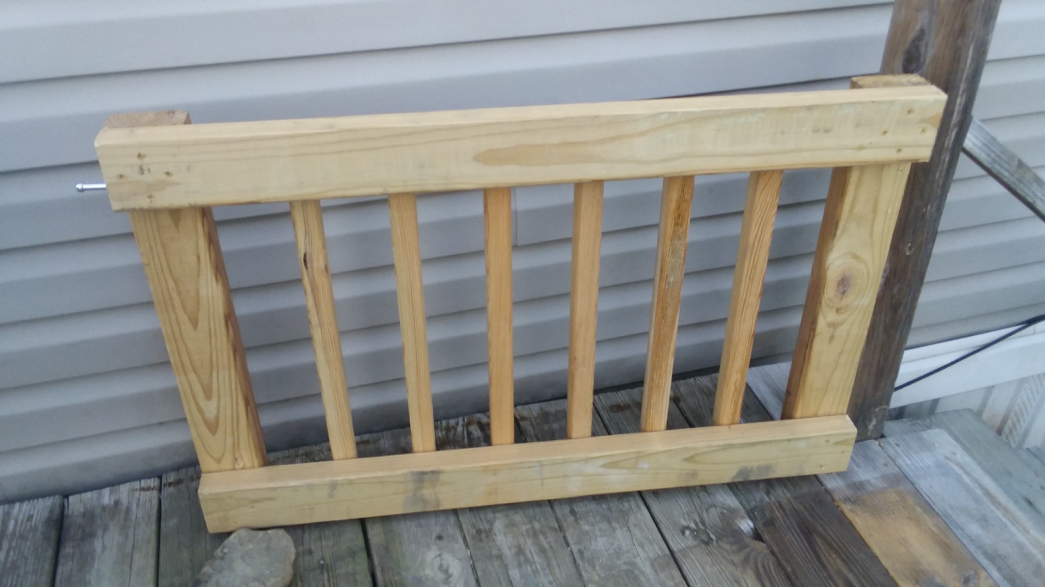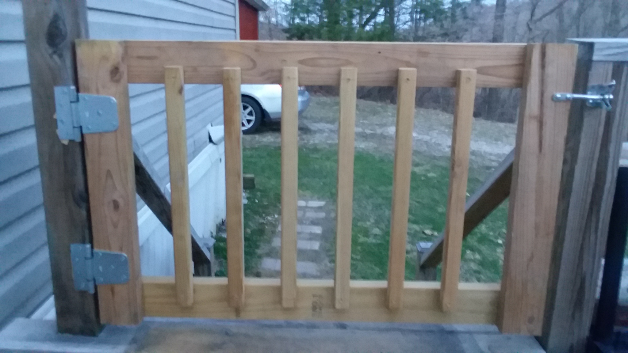 Well, since it was so nice today, I wanted to finish putting a gate on the deck. I made the gate last week out of 2×4’s and 2×2 bannister posts. It was probably a bit heavy, but that’s OK.