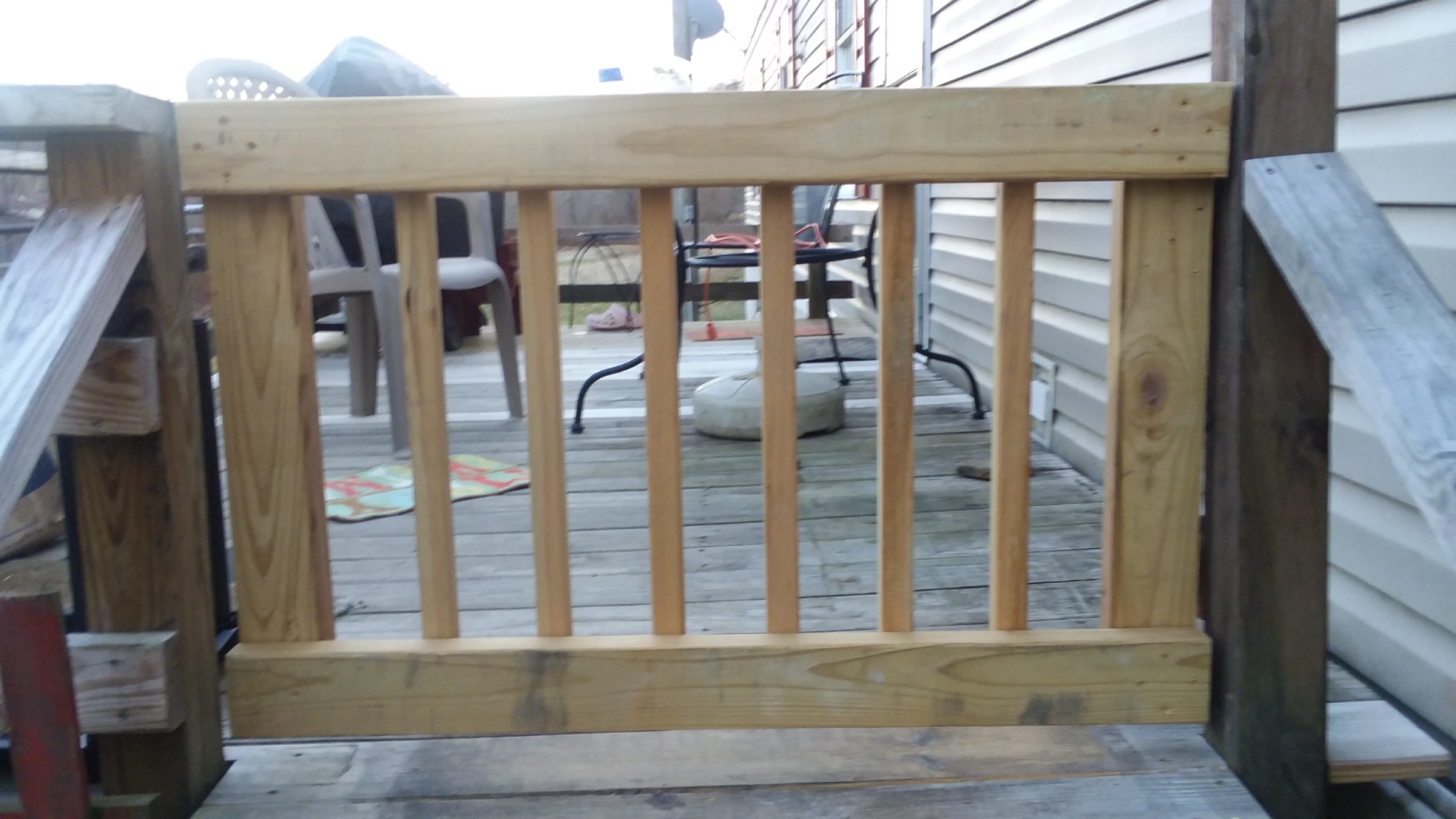 I plan on replacing a bunch of deck boards so excuse their ratty appearance. I plan on putting some dark stain on all the deck, railings and gate when I’m done.