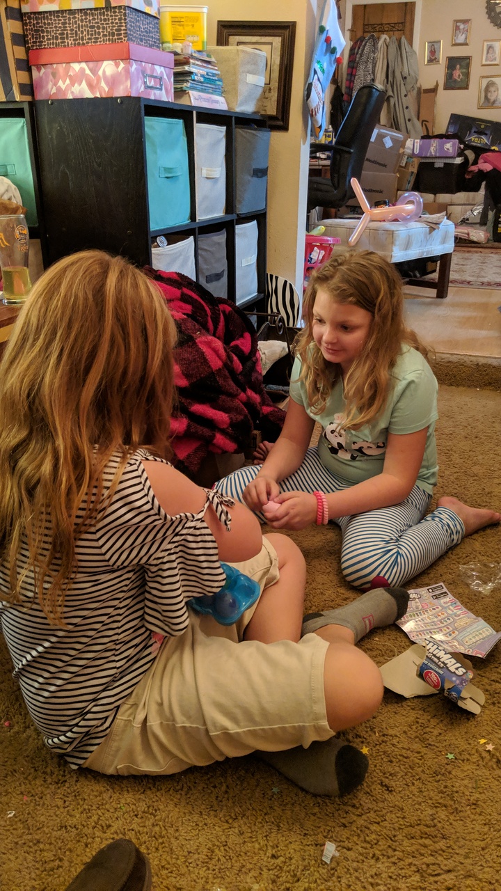 Now here is Christmas for you. I was so proud of these two I had to tell the story. The one on the right is Gabby, the one on the left is Dakodah. Sisters by marriage. Gabby had 10 dollars. Dakodah had zero. Gabby on her own gave Dakodah 5 dollars because she had no money and felt bad for her. They both went Christmas shopping at separate times. …today they opened gifts. Guess what? Dakodah spent her 5 dollars entirely on Gabby. Guess what? Gabby spent her entire dollars on Dakodah. This my friends is what we can ALL learn from… Merry Christmas…from the mouths of babes… So cool. I just had to tell someone…