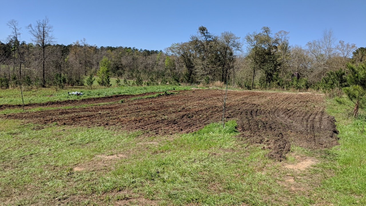 Just tossed in 6 tomato plants(Sun Goldx2, Championx2, and Super Sweet 100x2) and prepped the holes for my Compact Stella and two muscadine vines. At first I thought I’d put the muscadines along the fence, but we sometimes get wasps that nest back there. I figured a vine would just increase their ability to hide and be harder to take care of, so I’ve changed my mind on that idea. I’m going to use the vines to produce shade for the root zones of my pakistan mulberry, plums, and supply some afternoon shade for the blackberries/herbs. I’ll have the vine at 3-4 feet instead of the normal 5-6.