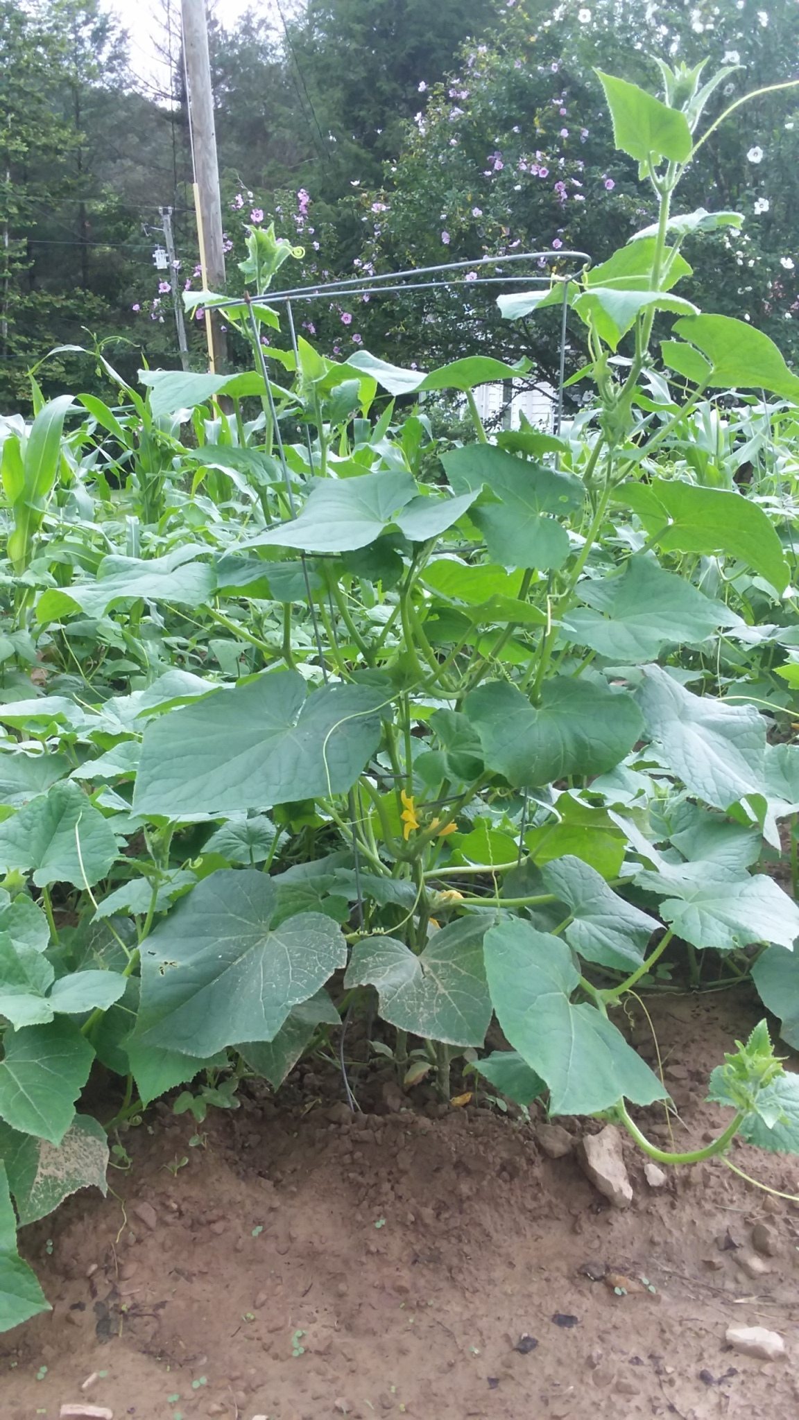 Overall view of patch, about 40 x 65 feet. We haven’t fenced it in yet to keep deer out, but have just had a few cuke and bean plants browsed on. I’m holding off on a fence to see how long I can get away with it.