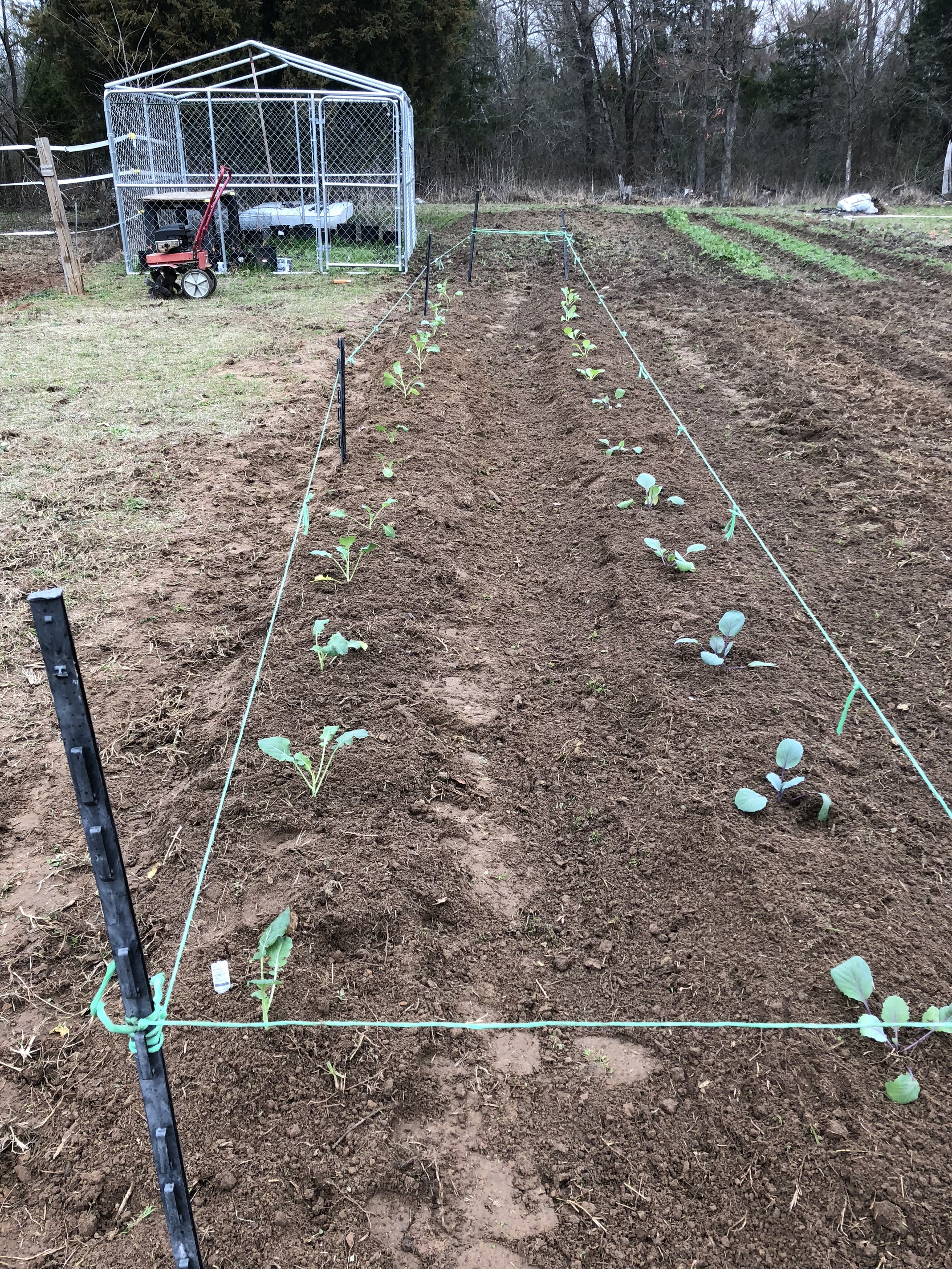 I’m just about ready for spring. Asparagus beds manured and mulched, muscadines and others pruned, garden plot started and broccoli, collards, and cabbages planted!
