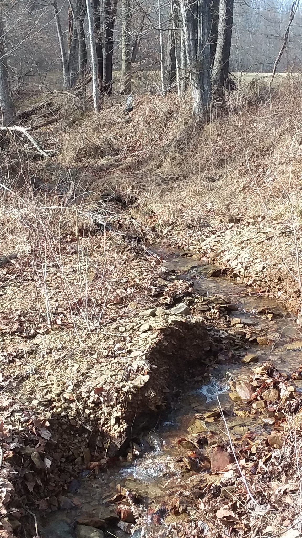 Looking up the creek bed from lower driveway with some runoff. It’s been very rainy here lately.