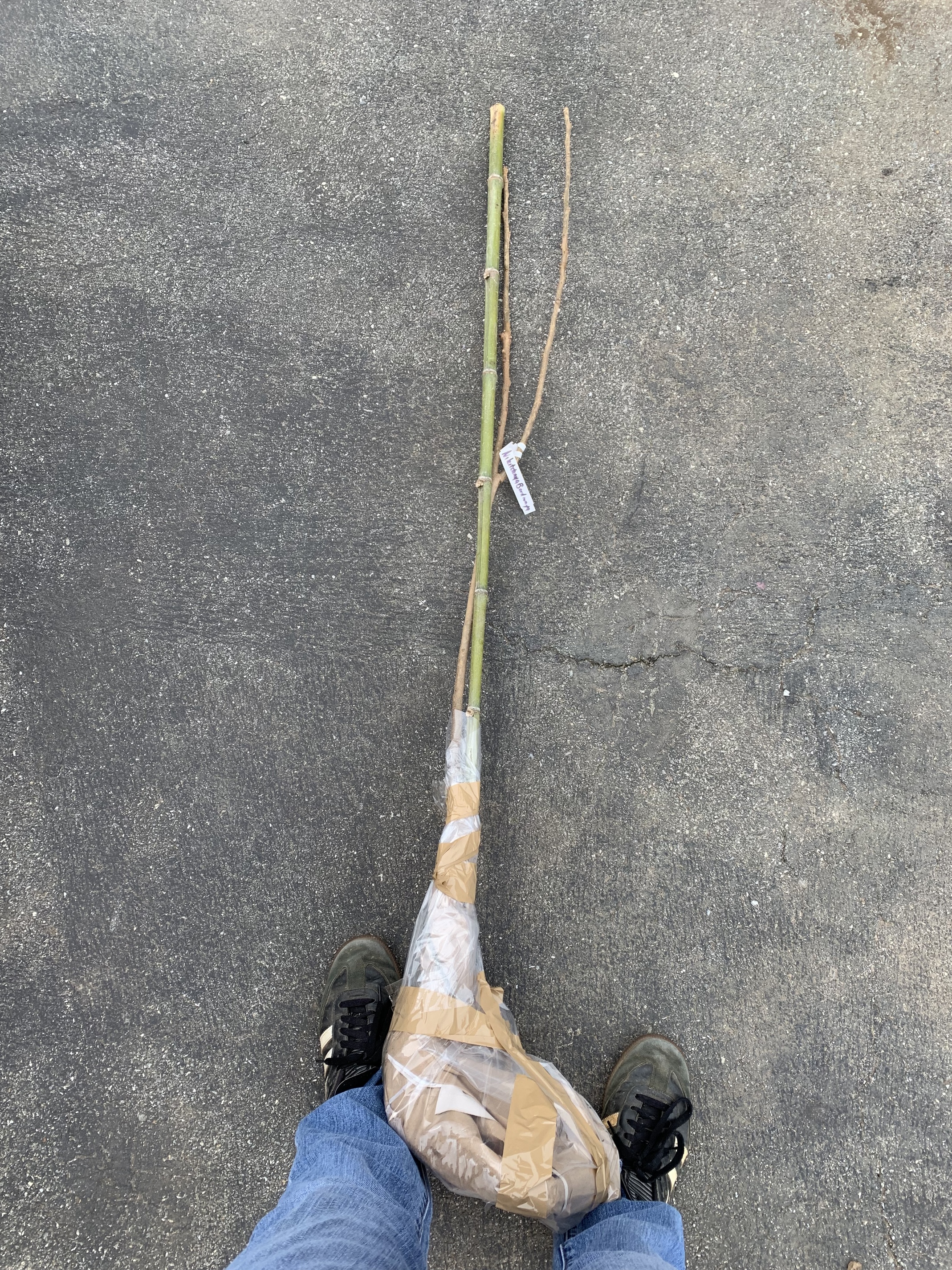 Today I came back from vacation to find a nice package. I ordered another persimmon tree, Nikita’s Gift, from England’s Nursery this year, and it looks as good as the one from last year. Big strong roots, and a thick caliper. Surprisingly it didn’t have a taproot, but it had plenty of other ones so whatever. I think it’s about 4 feet tall and would have been taller if it hadn’t been pruned to fit the box. My 2019 planting season officially starts with this tree. The snow has all melted and it finally feels like spring.
