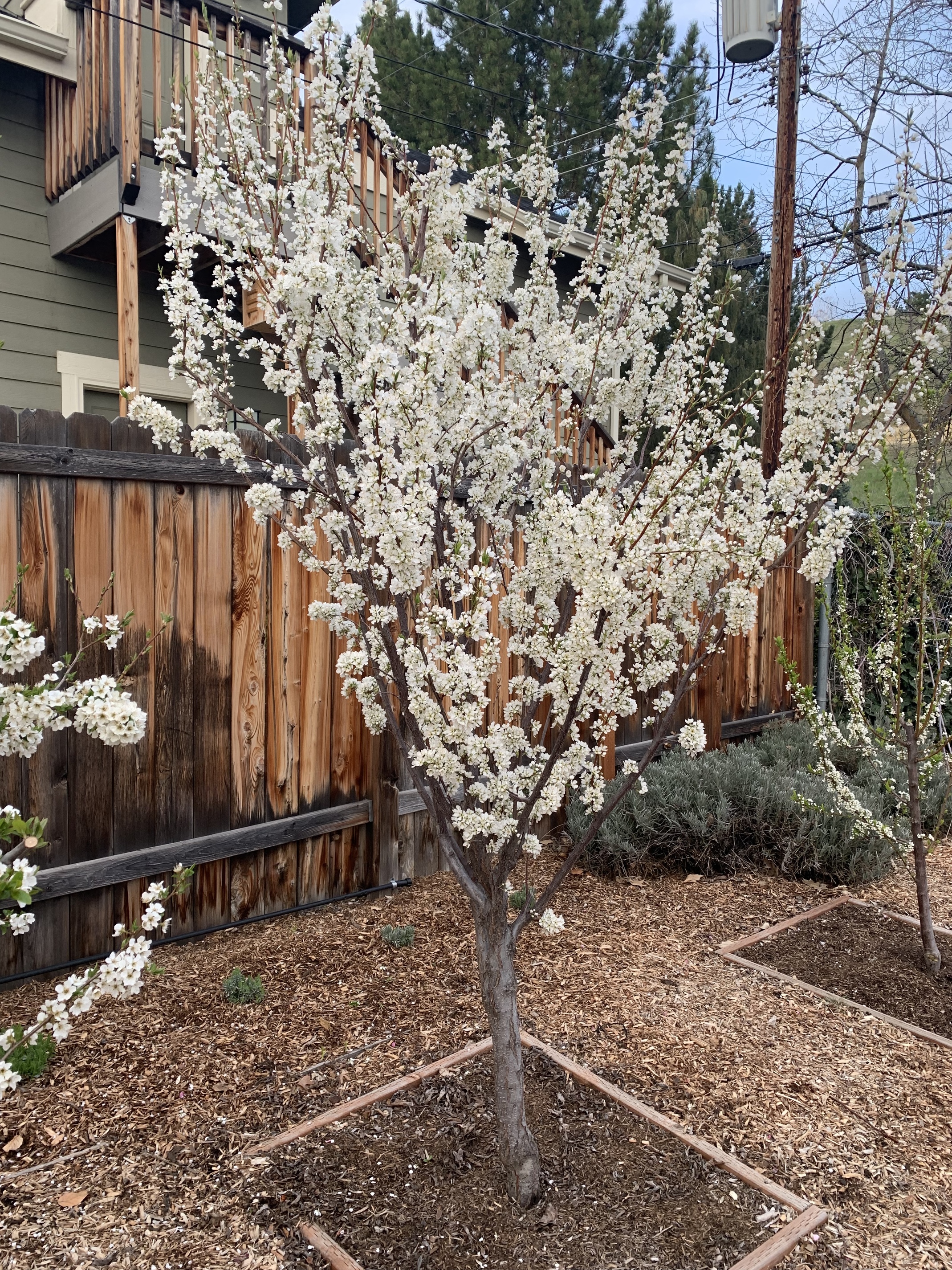 Man O’ Man! Those are sweet little fruit trees! Love your ‘mowless’ yard, too.