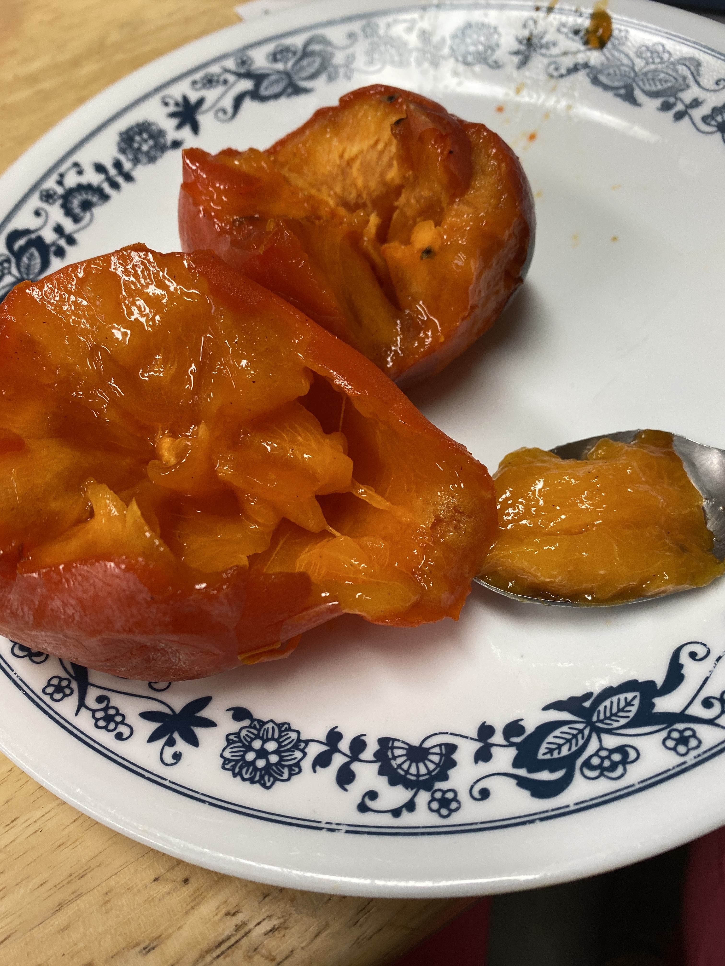Here’s the last two fresh persimmons for the year—I do have some dried ones. They were amazing!
