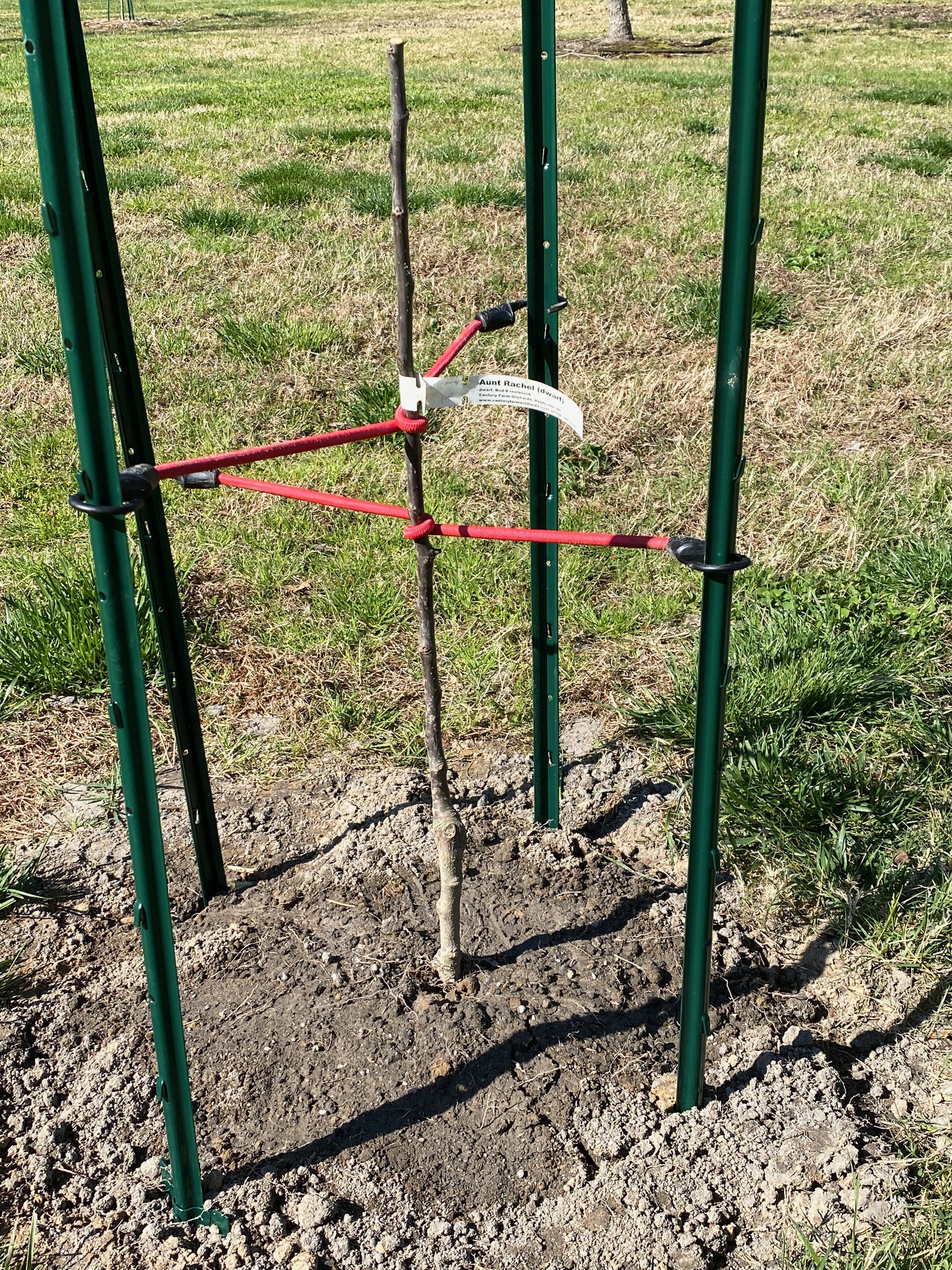 They are dwarfs on B-9 and they will need permanent staking. But, for now - my silly bungee method will have to do.