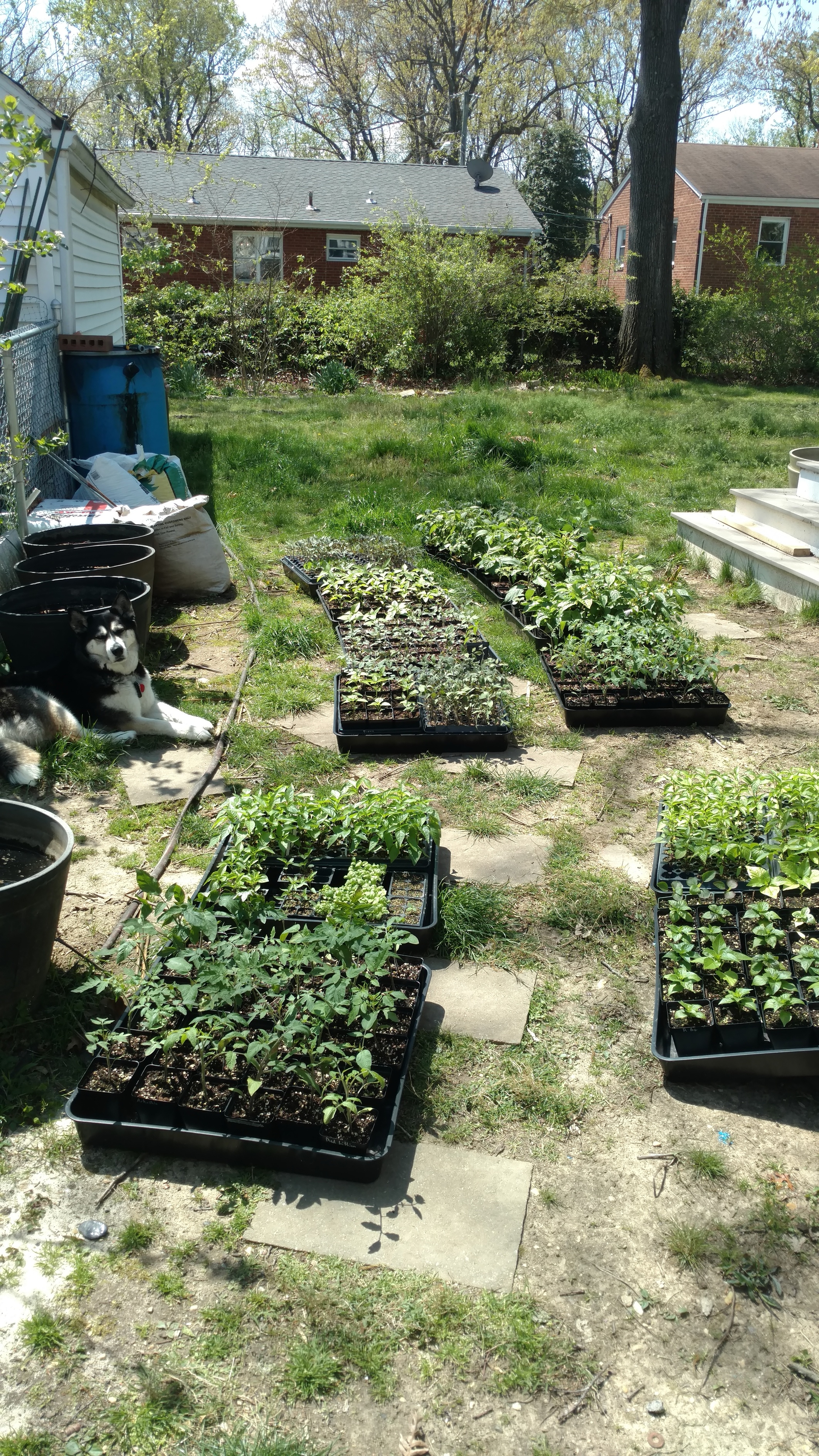 Most of these were destined for a PTA plant sale I donate them to, but that is now cancelled so I put a message on a small local facebook gardening group and the head of our community garden sent it out to the gardeners. I’m doing no contact pickups at the driveway and people can send their donation to the PTA via paypal or venmo. I am overwhelmed with orders! And it is tough to keep straight who wants what and what I’ve already promised to other people. This is way more work than I bargained for, lol. My dog guards them to keep the squirrels from digging in the pots.