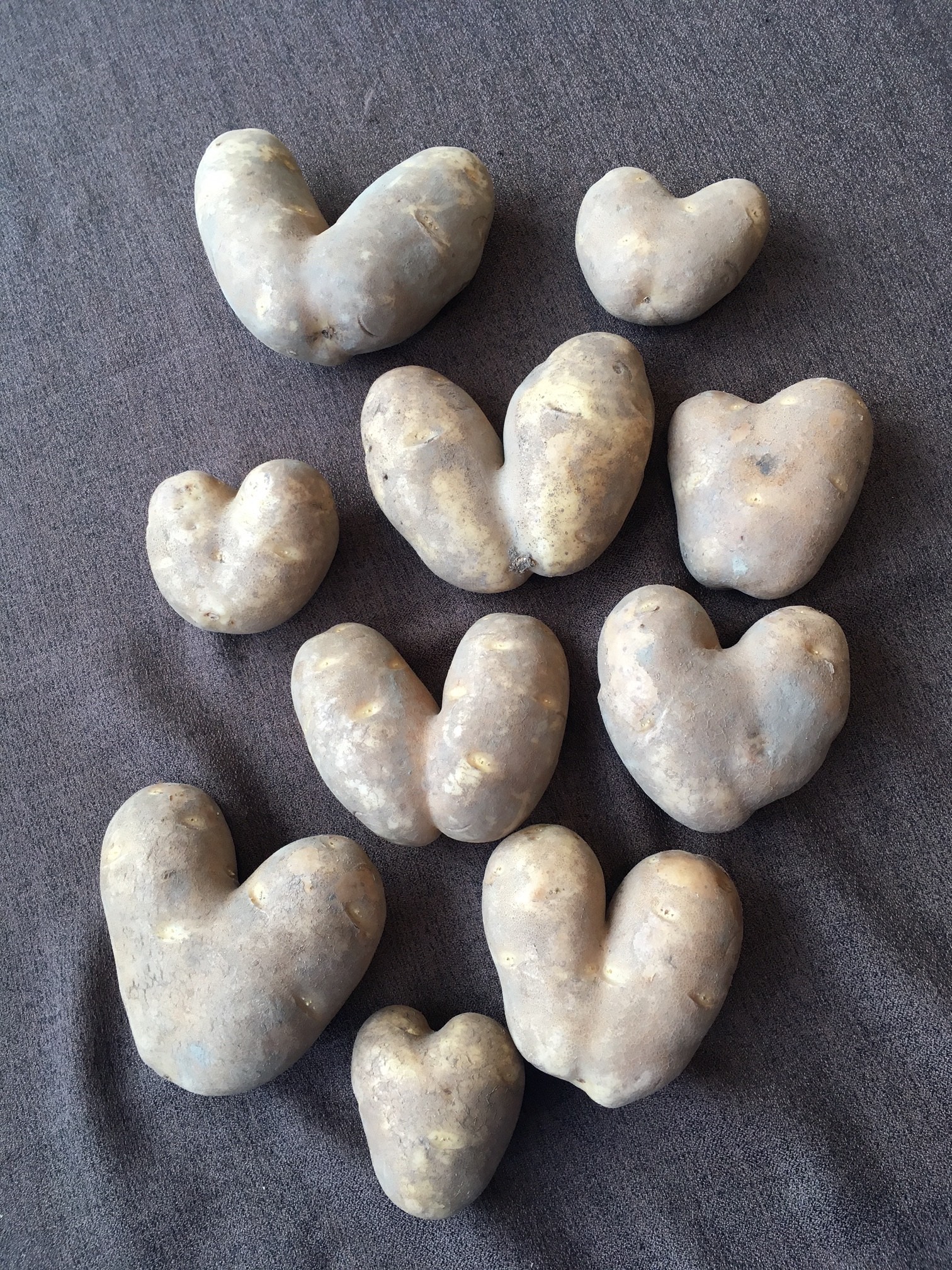 A collection of heart-shaped spuds my niece and nephew gave me for Valentine’s Day.