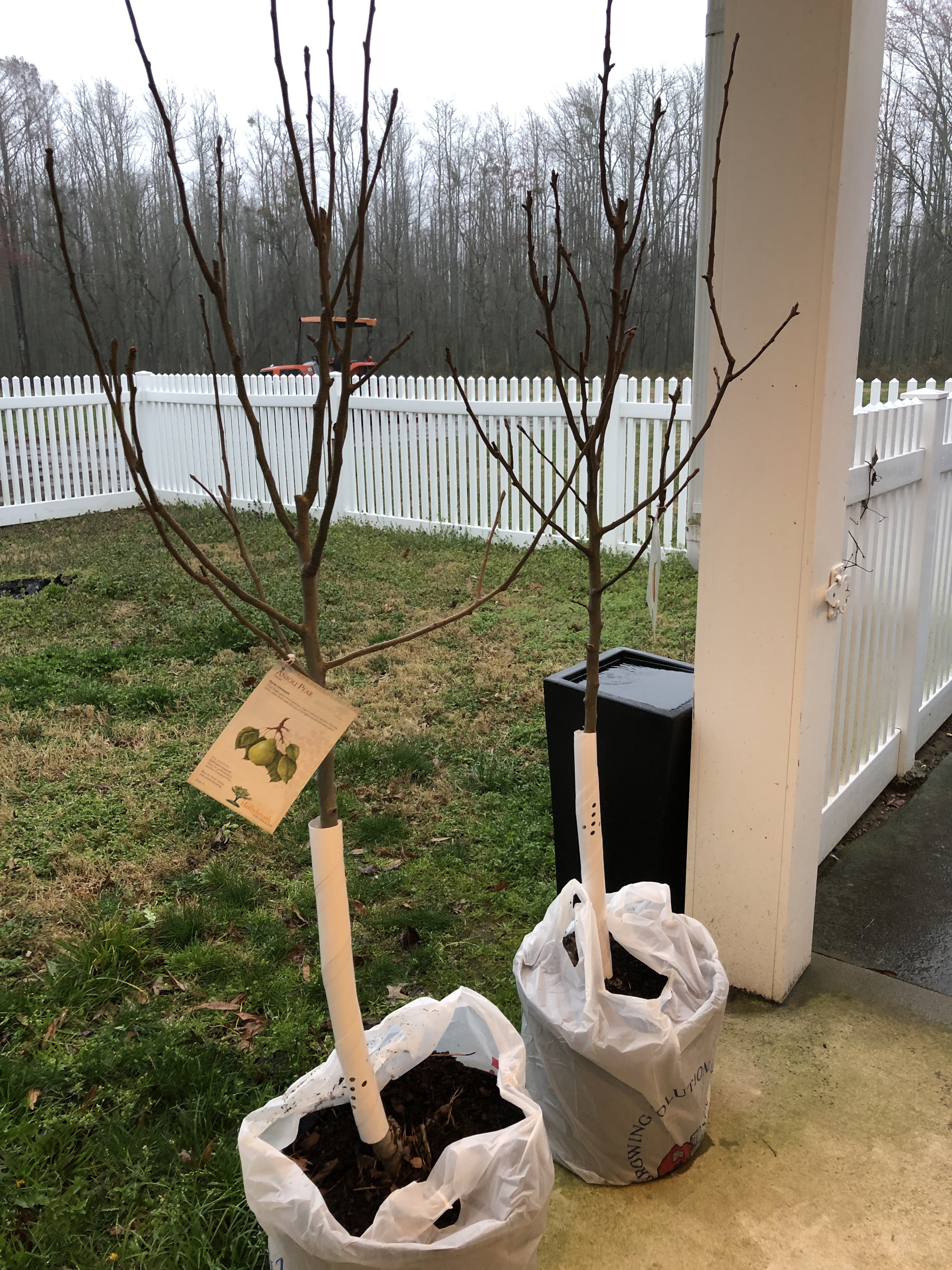 These are the 2 lovely little pear trees that I found at Southern States this past week.