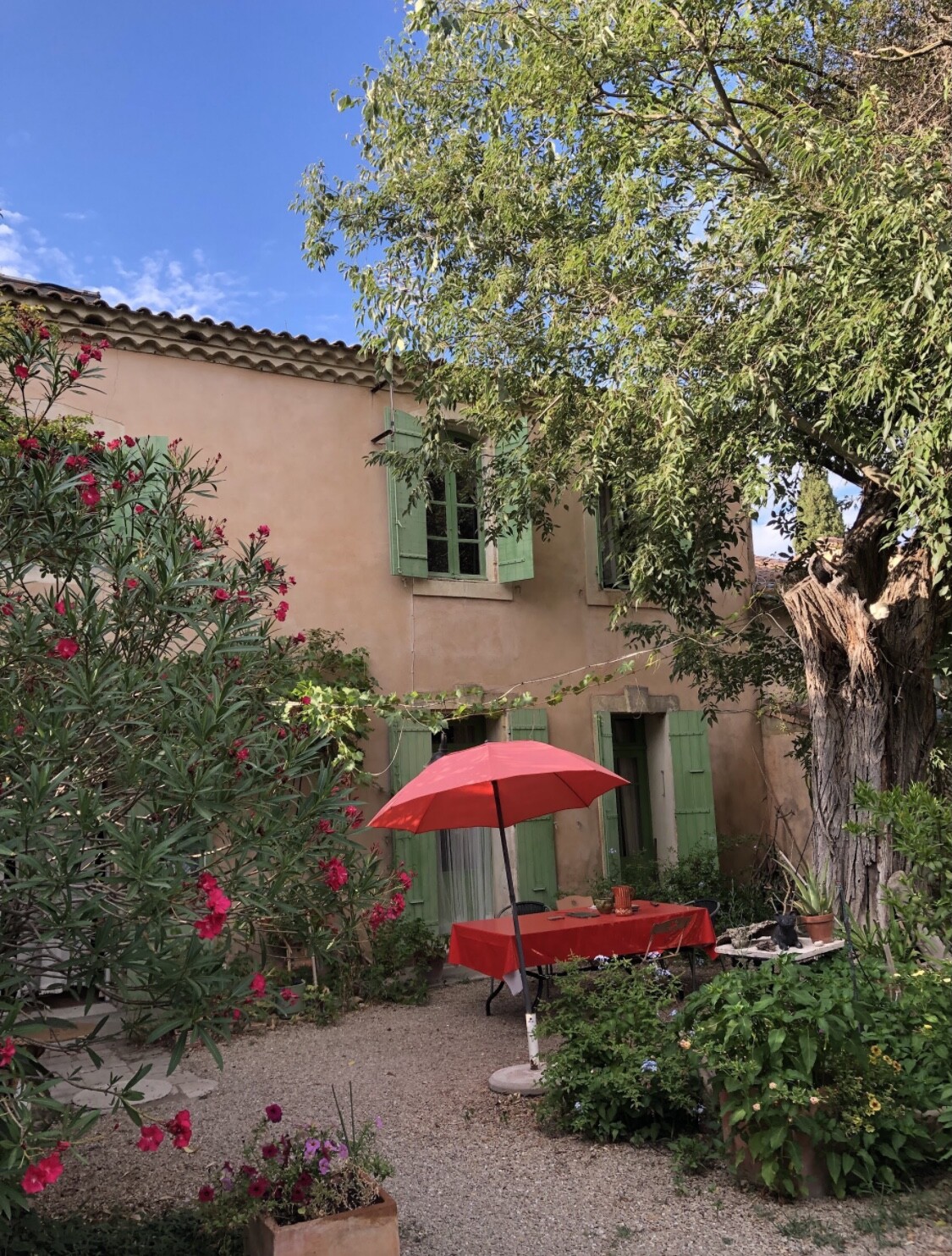 We stayed in an Airbnb, where we were the hosts of a French speaking couple. Fortunately I guess it’s close enough to Catalonia, that I was able to use my functional Spanish, to improvise something of a hybrid between French and Spanish and Catalan. It was a lot of fun. They were very pleasant, and their place was spectacular…. Avenue Notre Dame du Château, 13103 Saint-Étienne-du-Grès, France