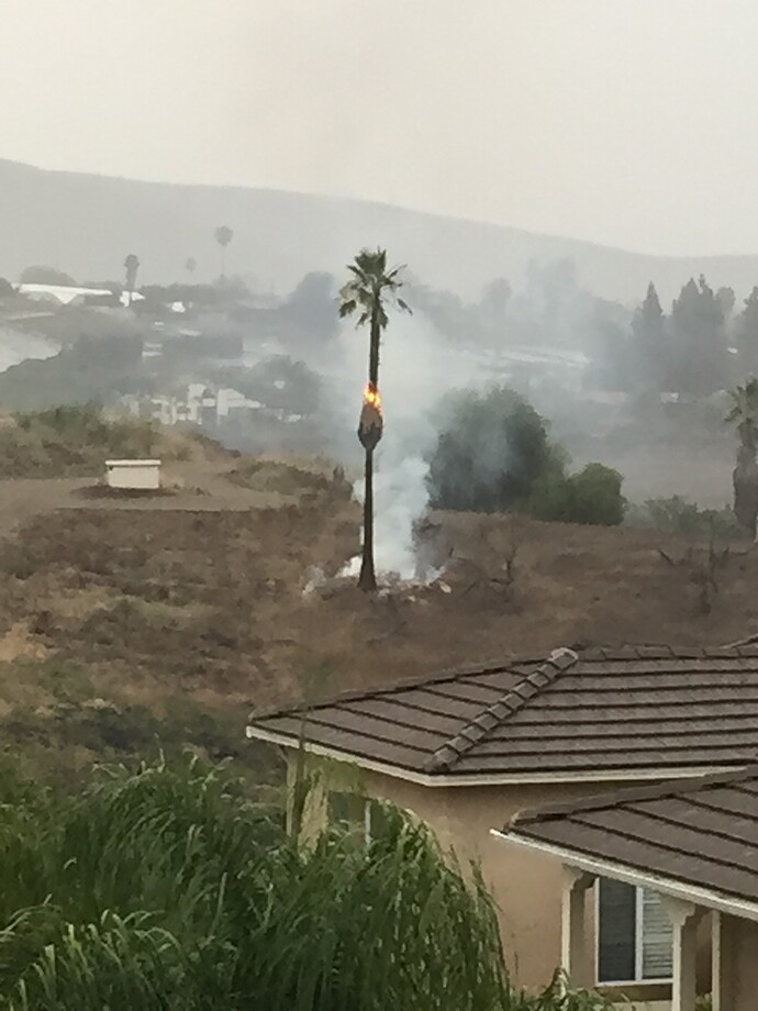 We has a wicked thunderstorm blow through, with a severe thunderstorm warning. We had multiple strikes and more than one fire started in San Diego county. This happened about 400’ from my house. Thankfully, the Vista FD got here in record time to put it out. I am surrounded by hundreds of acres of absolutely bone-dry scrub and brush. Thankfully as well, we had a decent, but short downpour, which helped to keep the fire from spreading just long enough for the FD to get here and put it out. Way, way too much excitement for the day.
