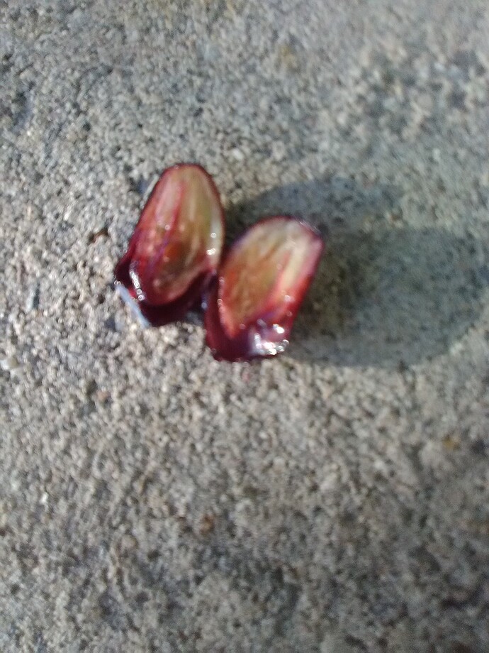 Not sure what they’re supposed to look like inside, but even purple ones are falling off at the slightest rustle of a branch, usually natures way of saying, “Hey, I’m ready”