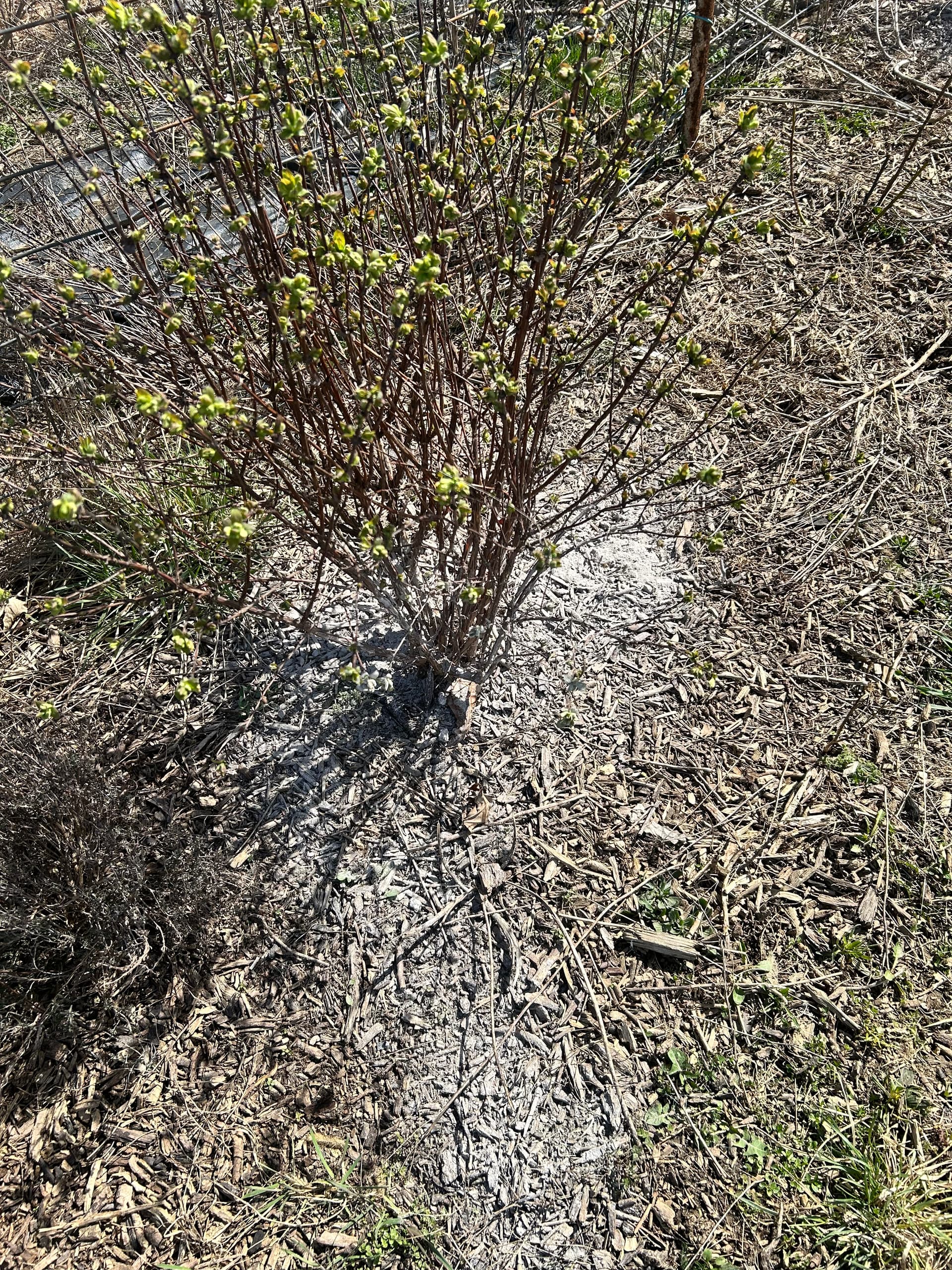 I decided to try the wood ash on one row with about 10 Aurora and 10 Tundra planted. I just tossed two hand fulls on top of the mulch of each shurb.