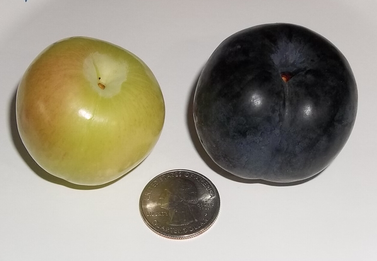 Which plum would you choose? The green one is at that perfect stage to eat as is or with a little salt. The other one is out of this world sweet and has a little crunch when you bite into it.