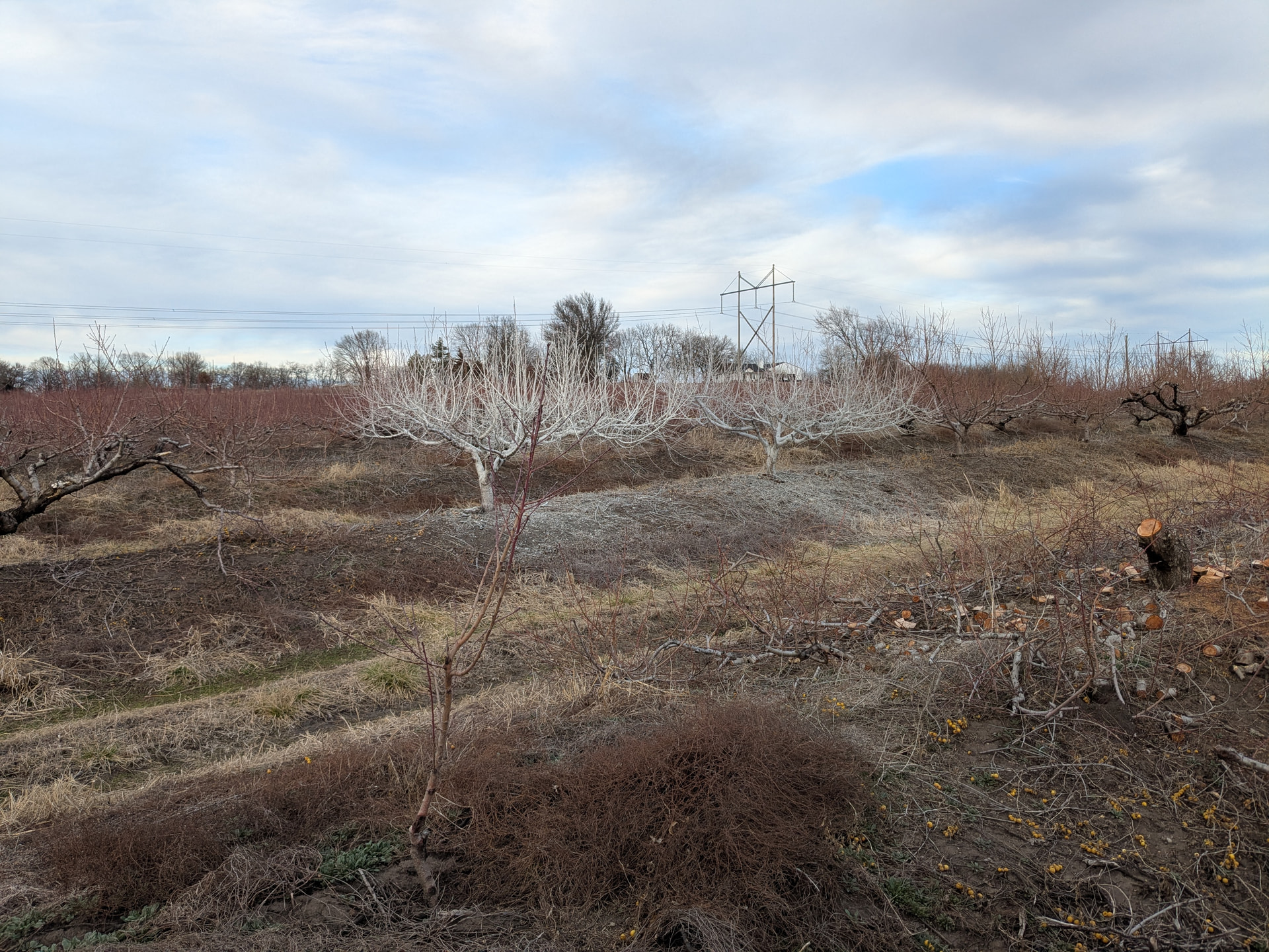 I ended up coating 5 trees total, which ended up being 3 different varieties of peaches. The varieties in each case have some control (untreated) trees right next to them of the same variety as the treated trees.
