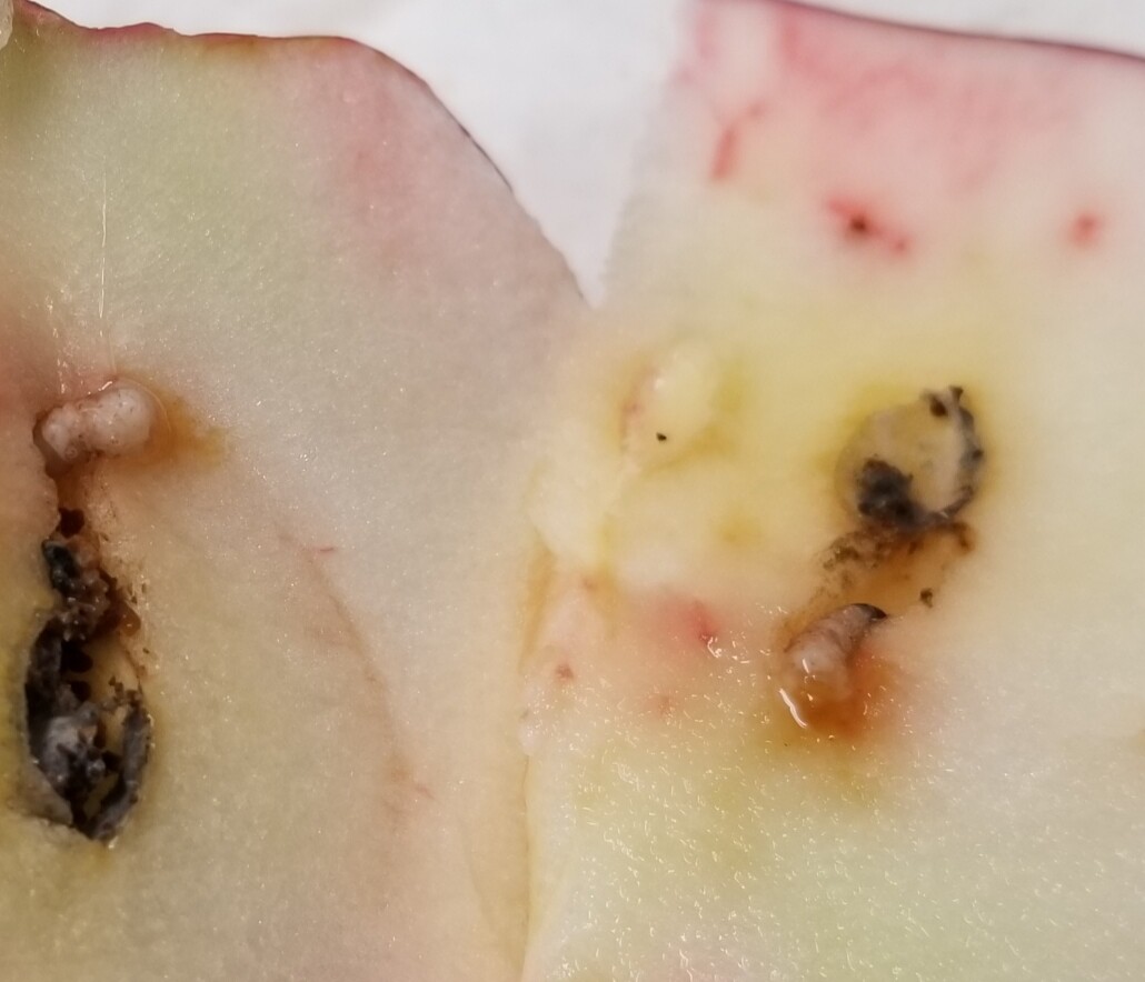 I’m pretty sure it’s a different type of larva in cherries. I mean I could be wrong, but I’ve mostly seen SWD larvae in cherries here, never codling moth or apple maggots (the two main kinds in apples here).