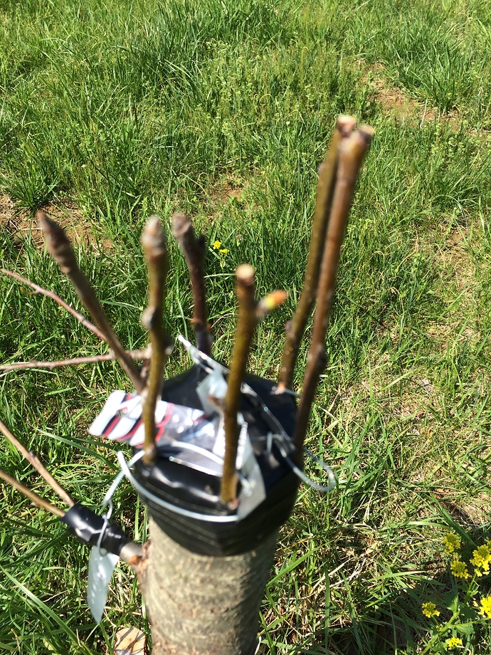BTWā¦please take @tonyOmahaz5 ā s advice about bracing those that you stump grafted. I did 2 stumps almost exactly like yours looks and was thrilled when they took offā¦and took off they did! They got to almost 3 feet long but I wasnāt smart enough to brace them (for example, drive a long stick in adjacent to the stump and tie your grafted scions to it). Sure enough, the wind took them out one by one. The last one was really callused in and I thought sure it was solid enough to not need bracingā¦wrong. I lost them ALL,. So just keep it in mind. It really hurts when you get the hard part (the grafting) to work and then loose them due to something so simple. Good luckā¦keep us posted (with photos if possible.)