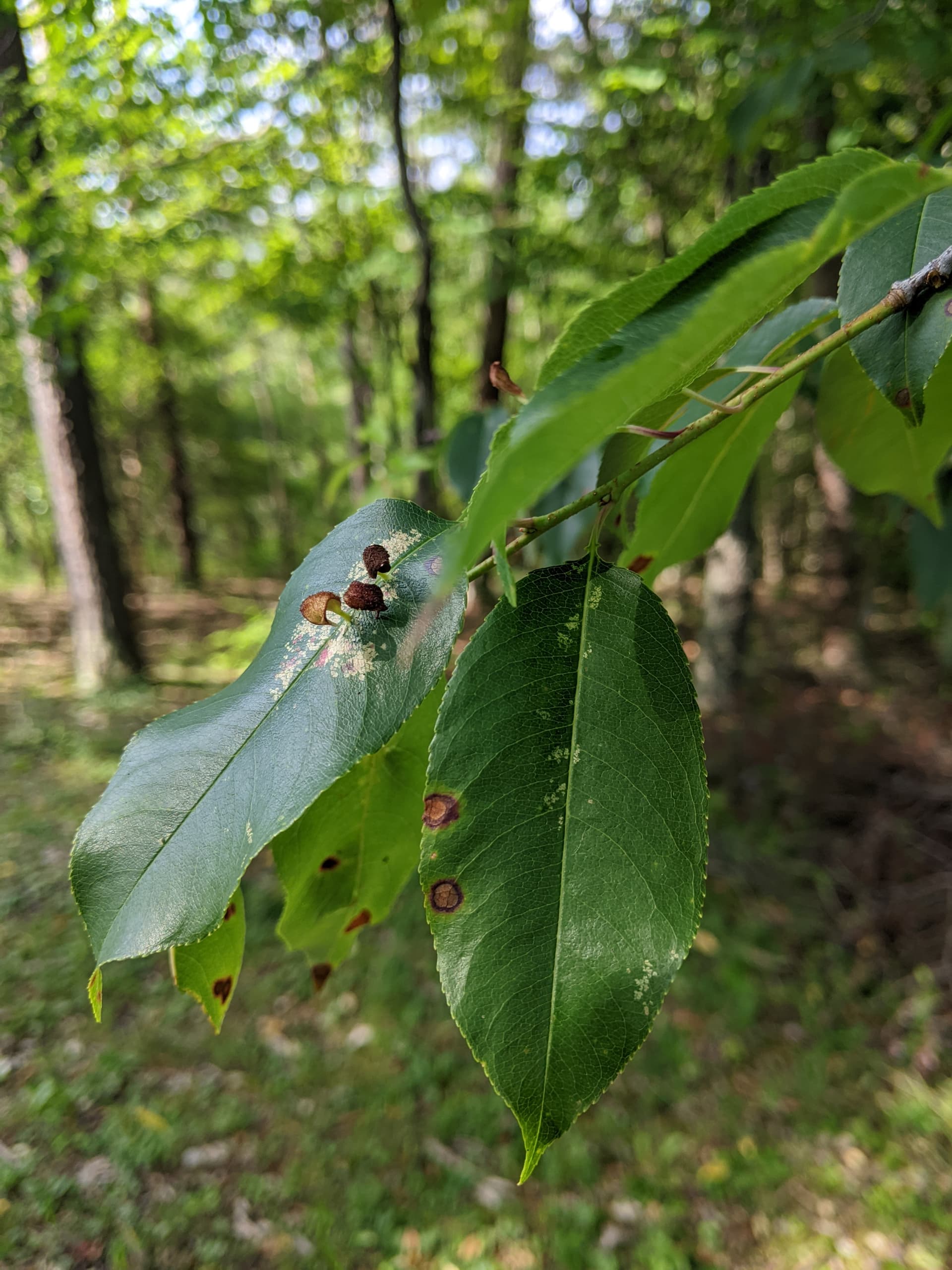 The most defining trait, I’d say, is the leaves. They’re quite elongated compared to other cherries. I guess you’d call it lanceolate. The first year wood and petioles are all bright red, too. The trunk is covered with lenticles. I do t think I’ve ever seen one much over 4” DBH and 25’ tall.