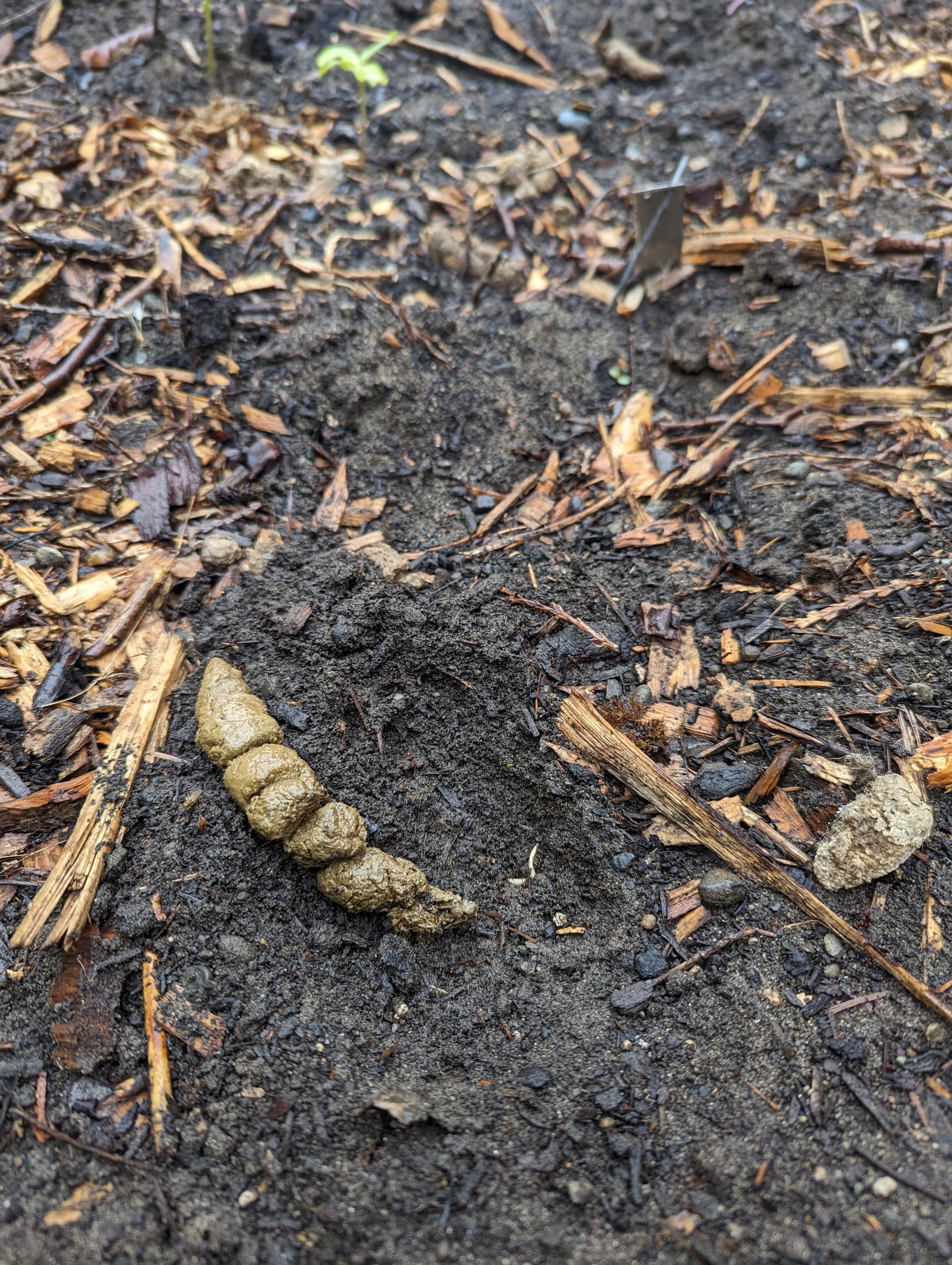 Unfortunately, the outdoor cats of Seattle have given up on this requirement, since there’s nowhere that stays dry through the rainy season. They dig in mud and wet wood chips even when I irrigate and mulch the garden beds. I looked out the window right after saying that and saw a cat digging in this wet, muddy, mulched garden bed, and came out just in time to chase him off mid-poop: