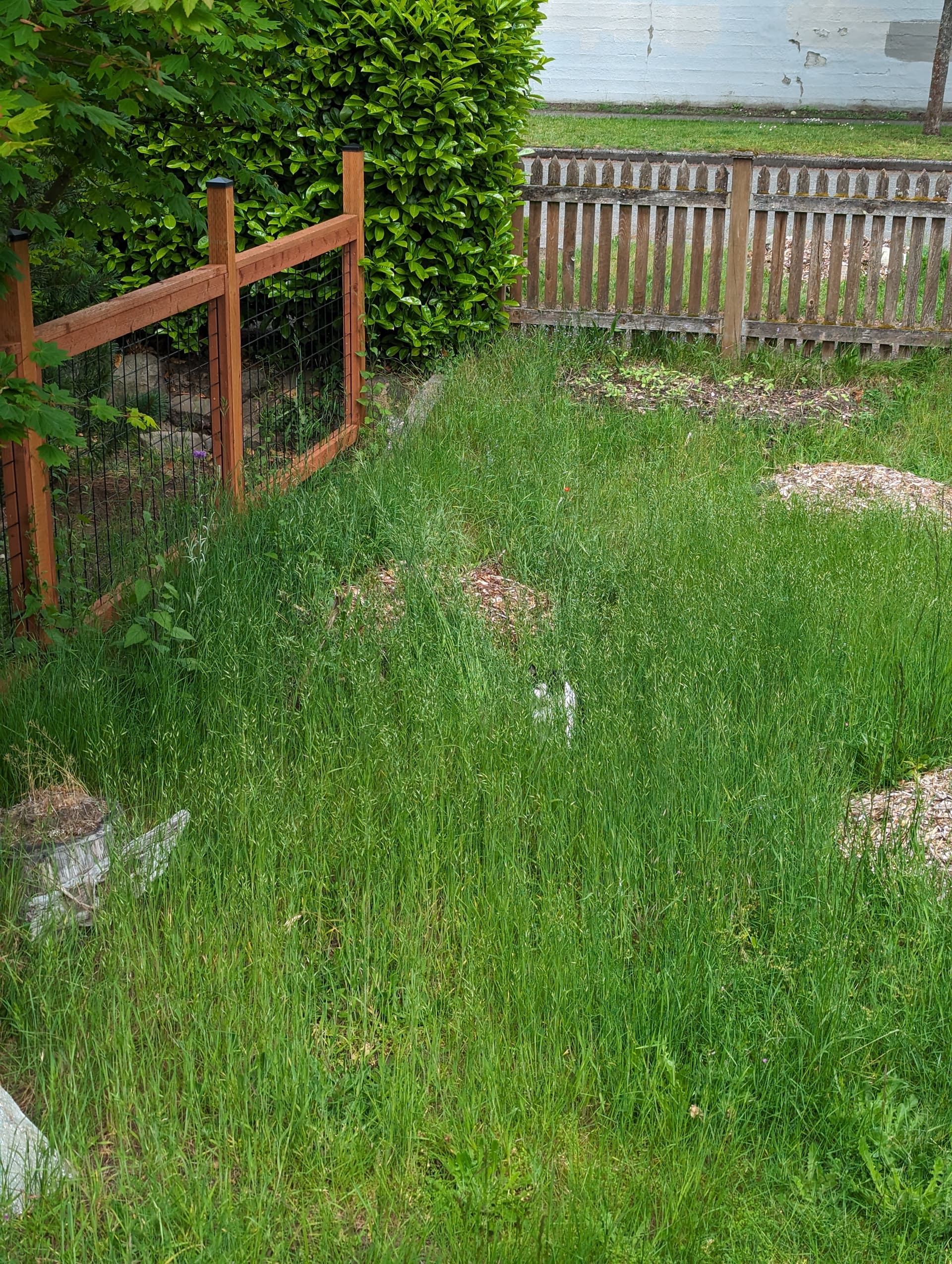 Speaking of bird families having a bad day, I spotted this neighborhood cat near the junco nest and took this photo before going to chase him off… too late, it was carnage. All five chicks were killed. I guess it’s time to mow the grass in that corner of the yard again.
