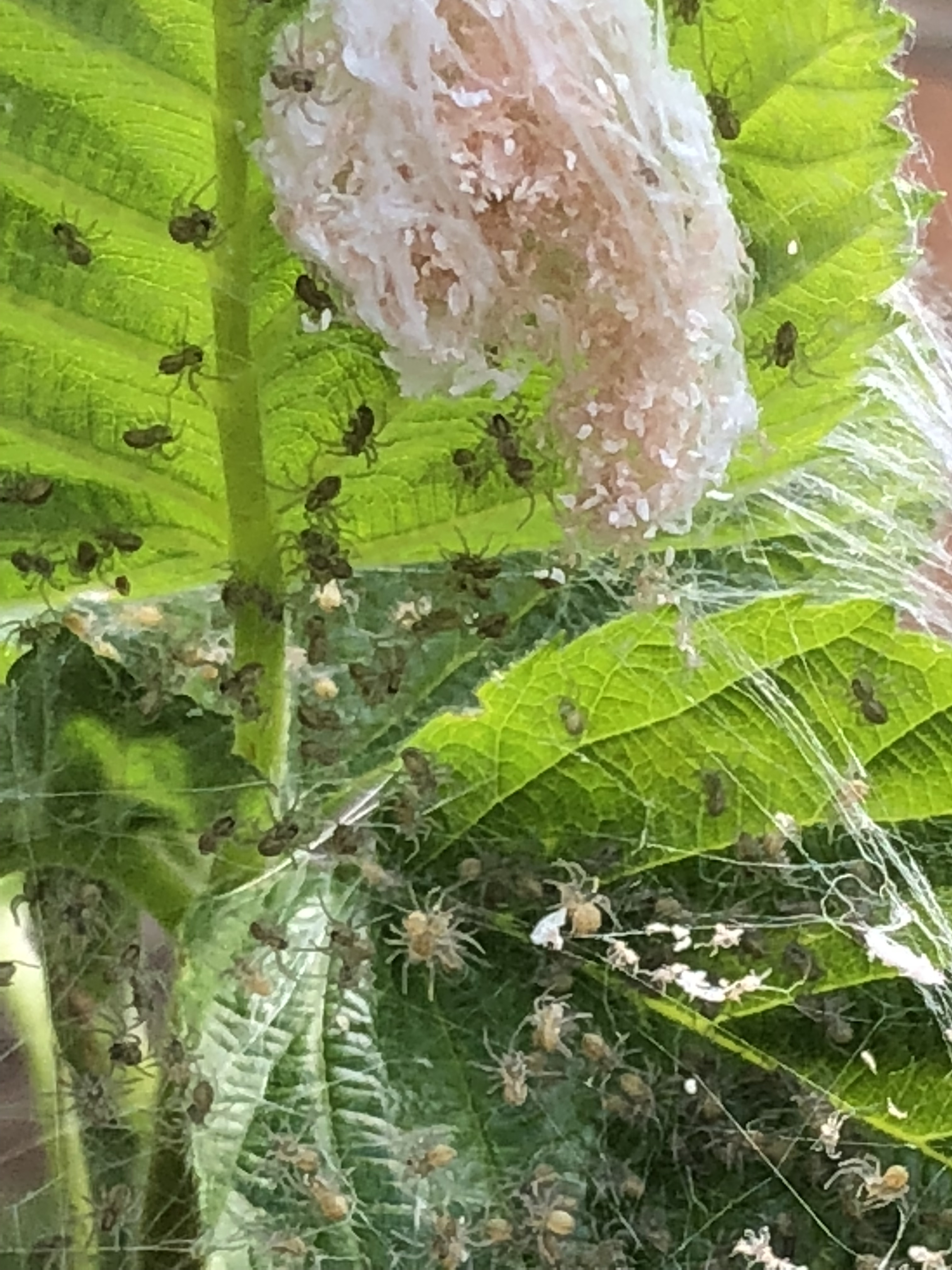 I found a wad of blackberry leaves all webbed up today. Thinking it might be web worms I tore into it and this is what I found.