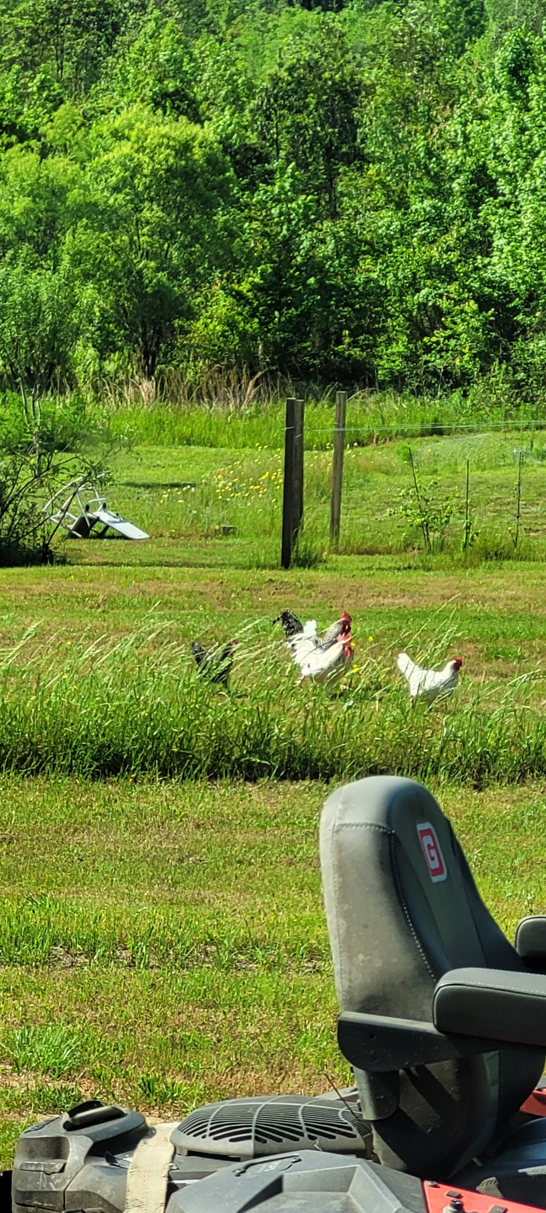 bet you dont even need to feed them right now. sure wish i could free range mine but they love digging worms in my mulched plants.