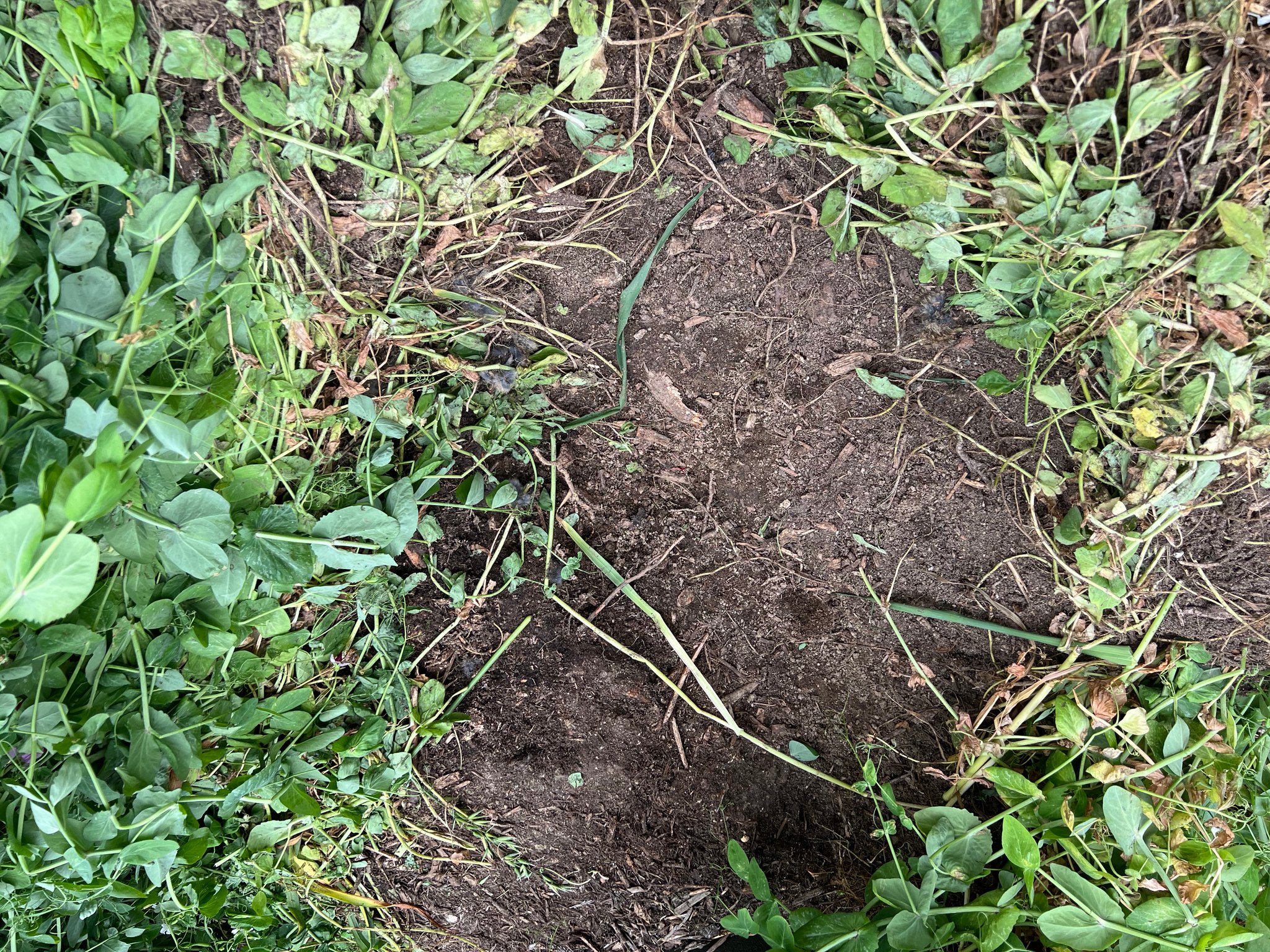 Sometime last night something tore up part of the garden in the front of my house. It is mostly cover crops that I should have already cut down already, so not too much lose in terms of plants, but it dug out a lot dirt as well. It is hard to see from the pictures, but the hole is about 2.5 feet X 2 feet by about a foot deep in the deep parts. And there is a bit of fluff (rabbit) in the hole as well. I know we have a few coyotes around lately, so I was wondering if a coyote might have found a rabbit burrow here and dug up and ate the rabbit? Thoughts?