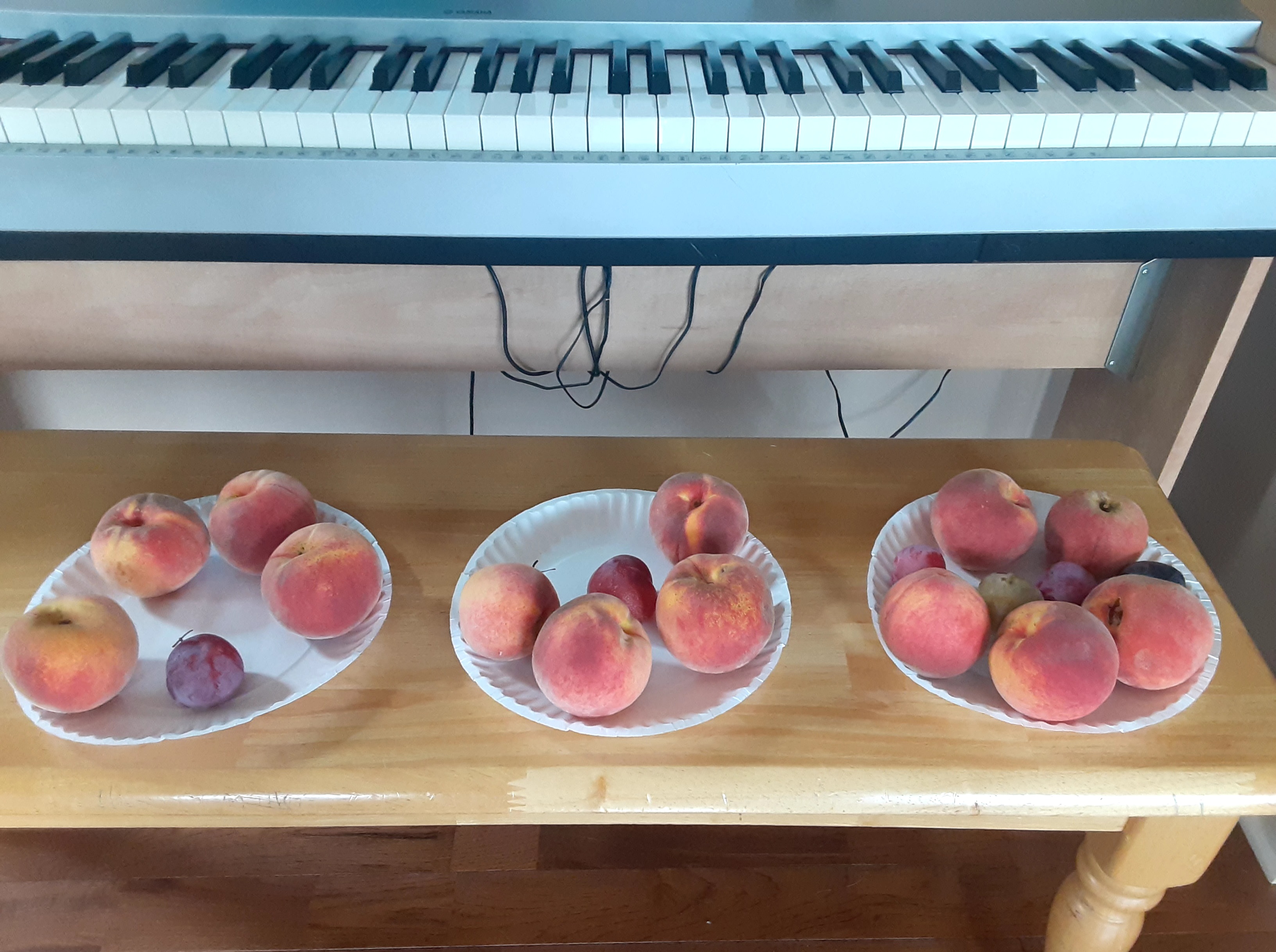 Those are actually white nectarines, though they have some red tinges. Pretty high acid- when I first tried them it was eye-watering, but now they are just sour (all while staying at 8 brix…)