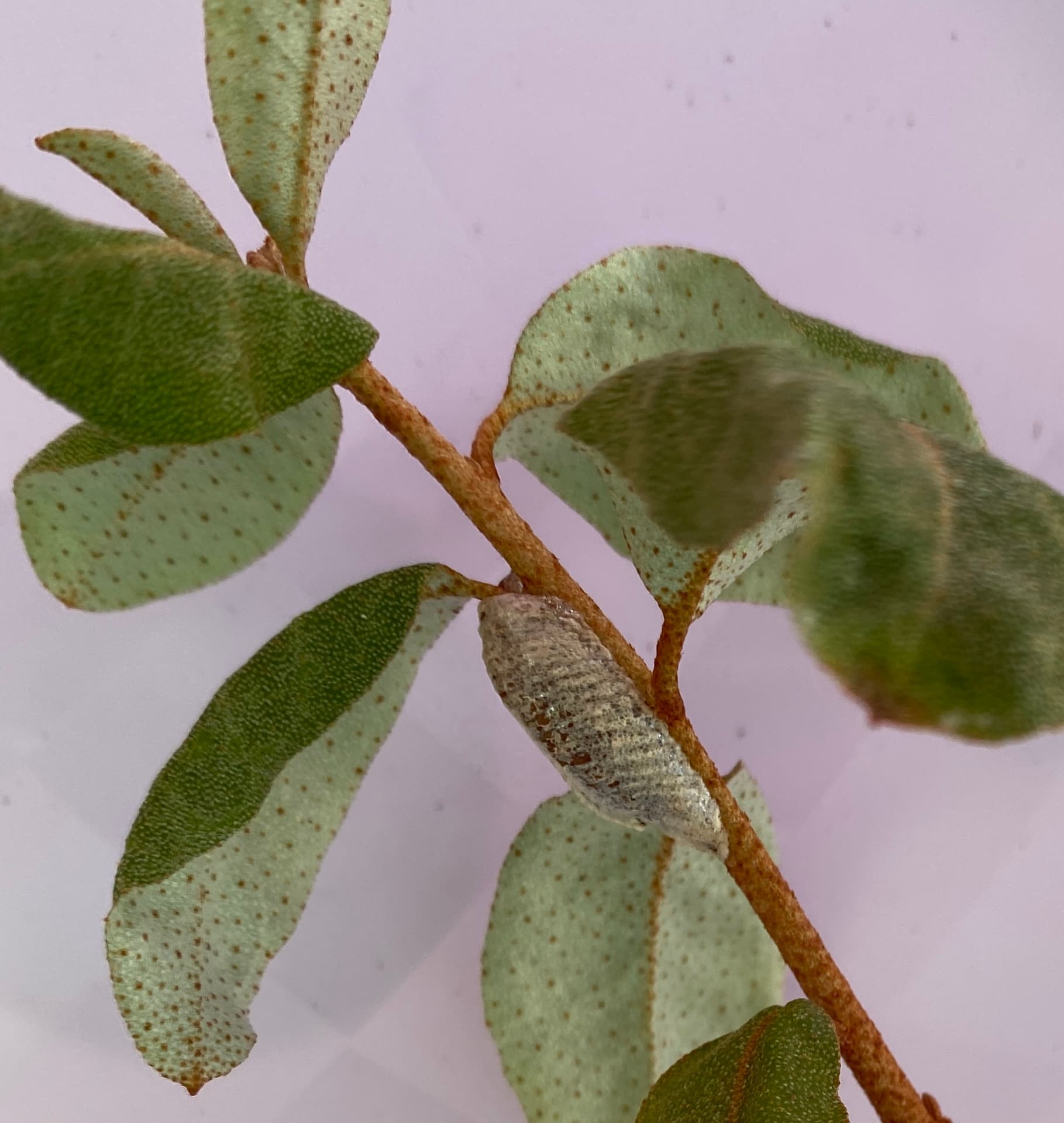 My rooted Tillamook/Carmine with small roots is still alive and actually grew a little. Looks like I’ve had a mantis place some eggs on the limb.
