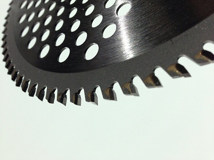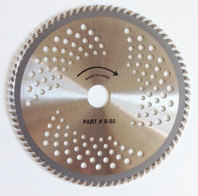 Renegade carbide blades. Best invention ever. No effort needed, you can just slowly move your machine and it cuts through everything. Gives more control when trimming around trees.