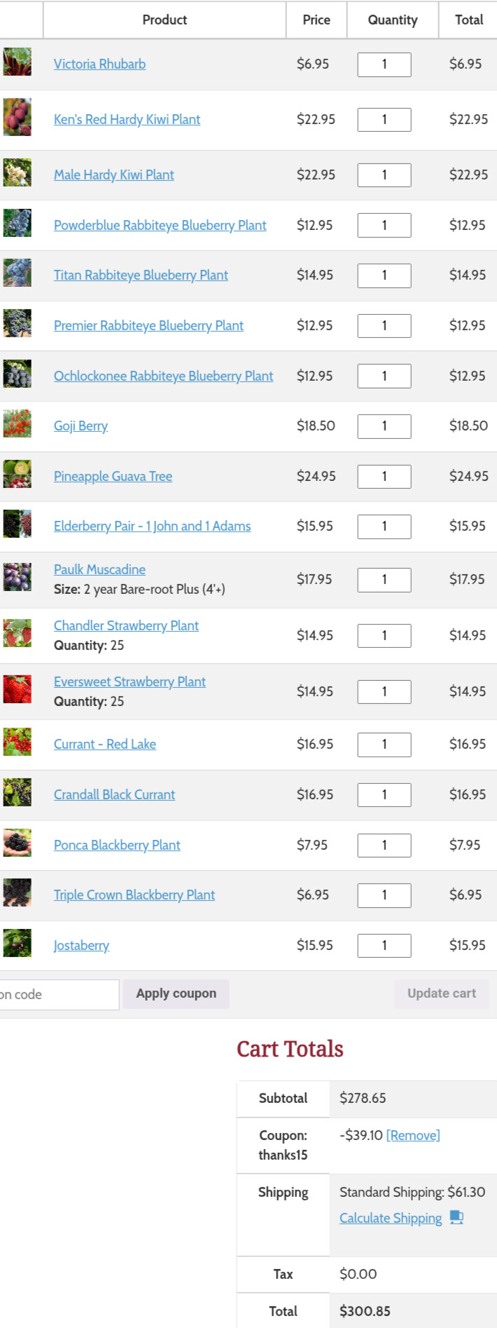 As a side on something you regret in the order- I think I have changed almost every plant order I’ve ever placed anywhere. Just email or call the company.